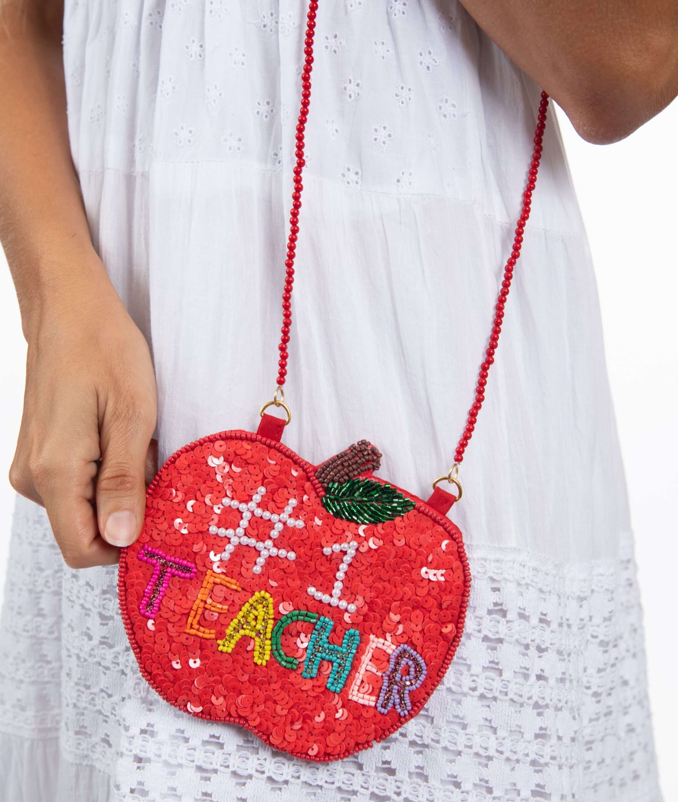 Apple Shape Seed Bead “#1 Teacher” Crossbody Coin Bag