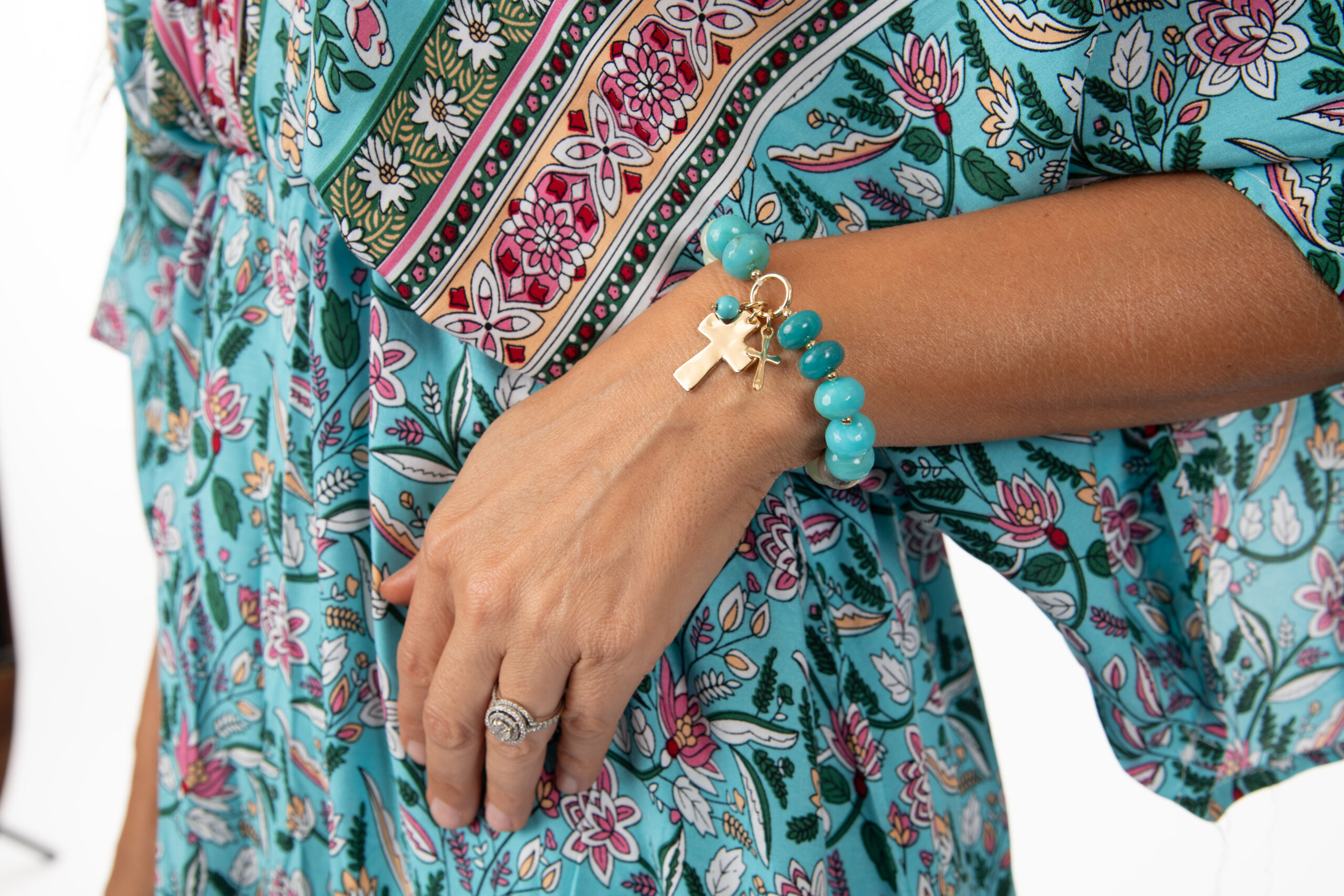 Beaded Cross Charm Stretch Bracelet, 3 Assorted