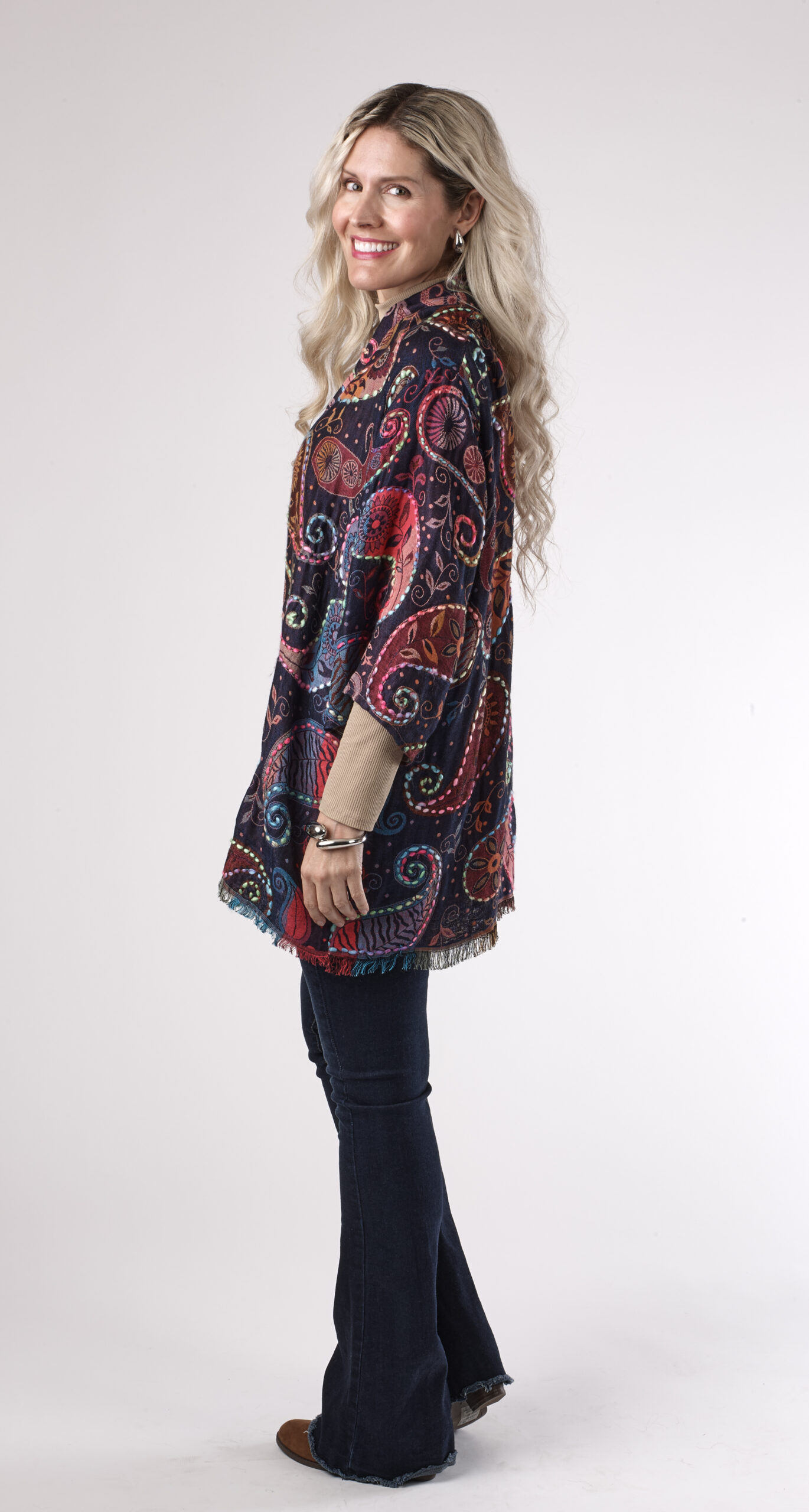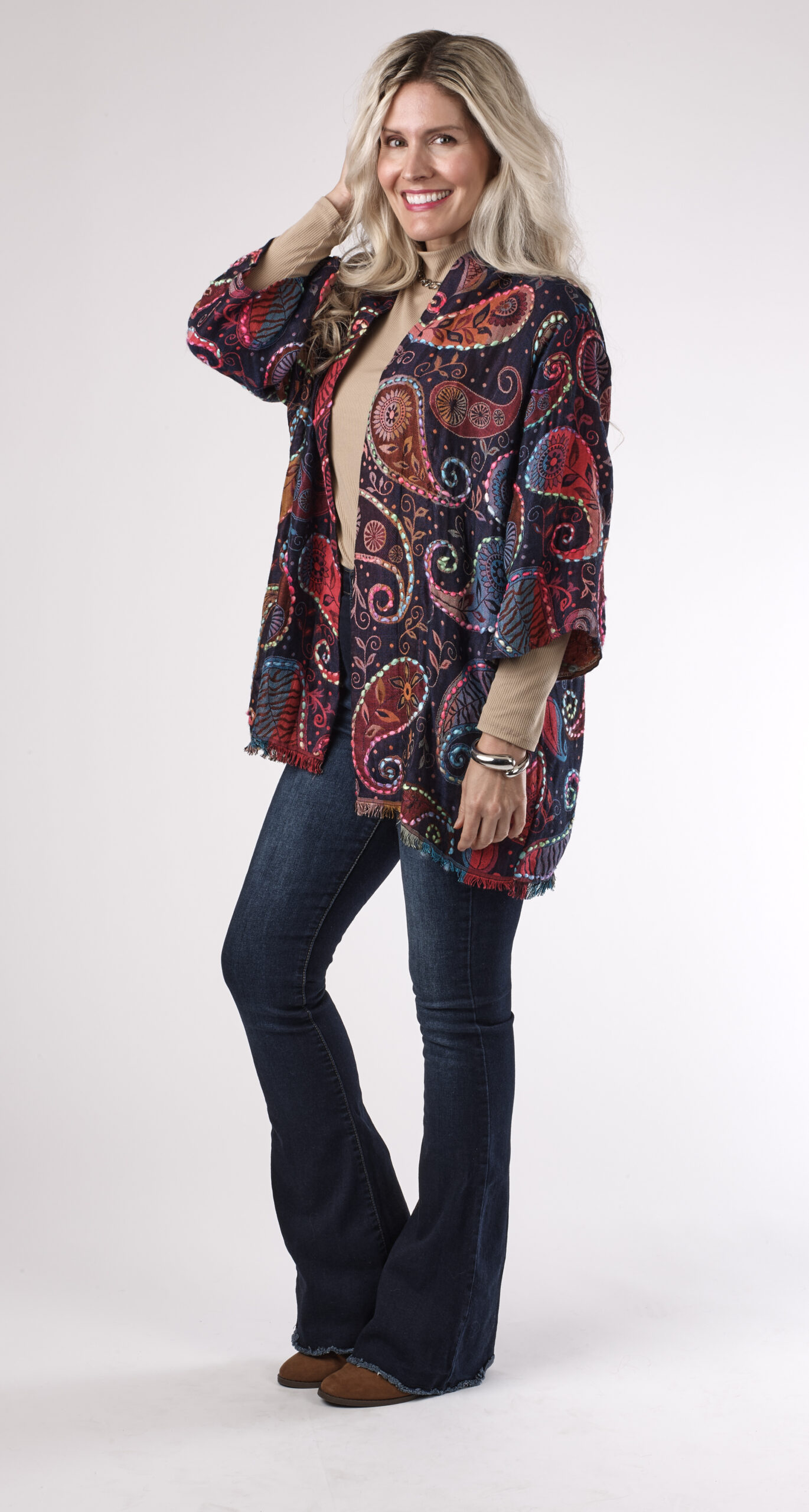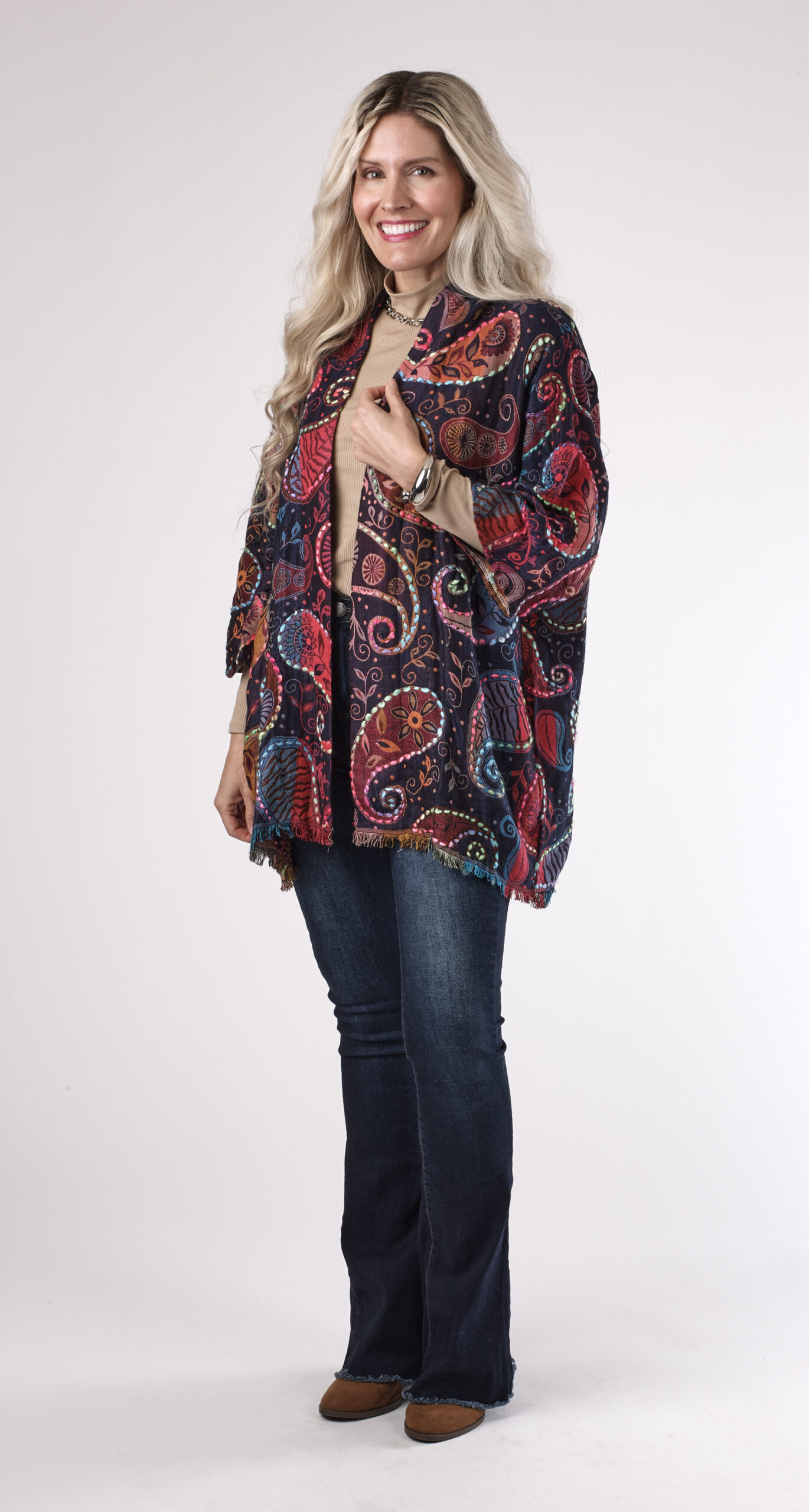 This eye-catching woven cardigan is soft, cozy and the perfect layer to brighten up cooler days.
