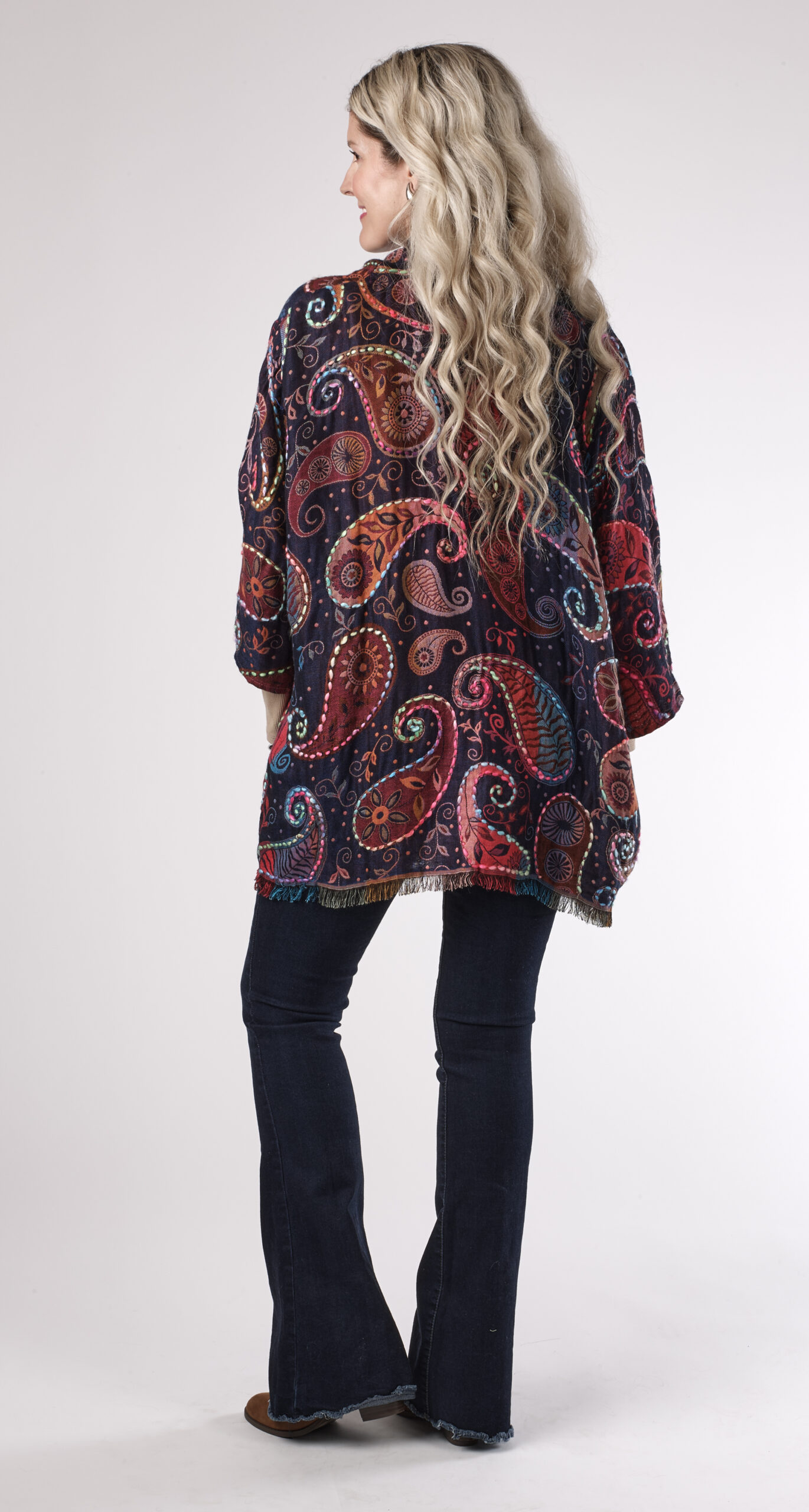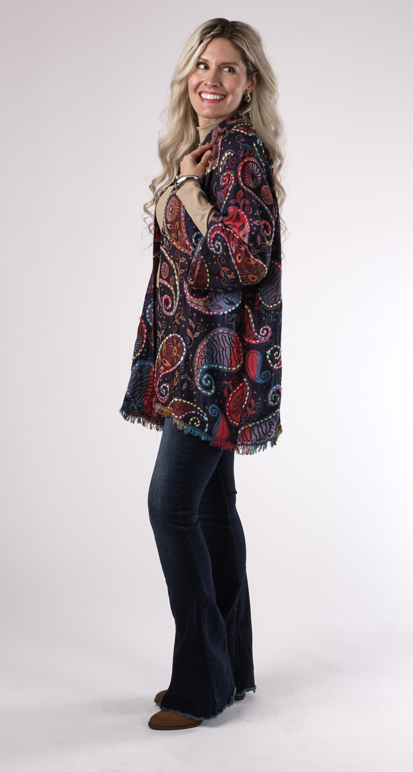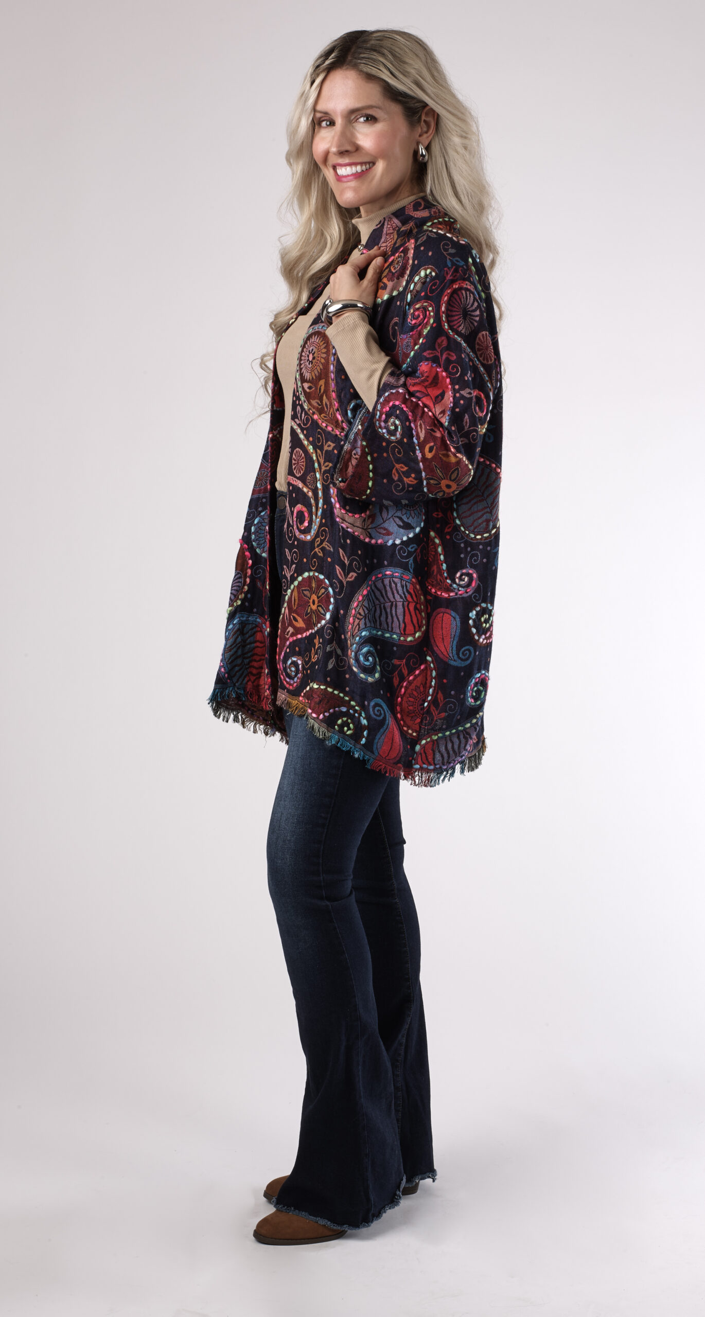 This eye-catching woven cardigan is soft, cozy and the perfect layer to brighten up cooler days.