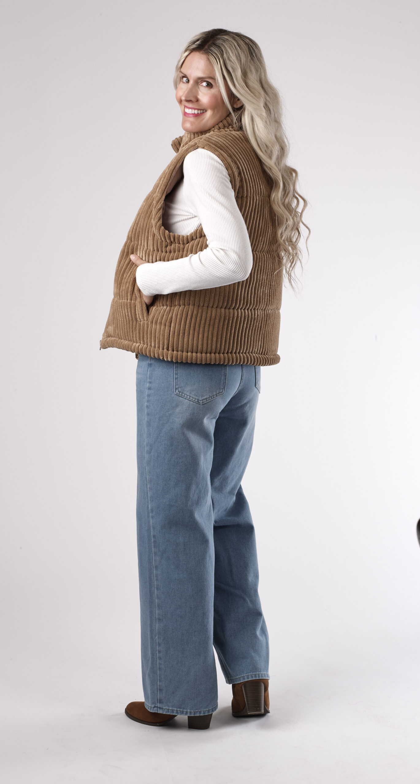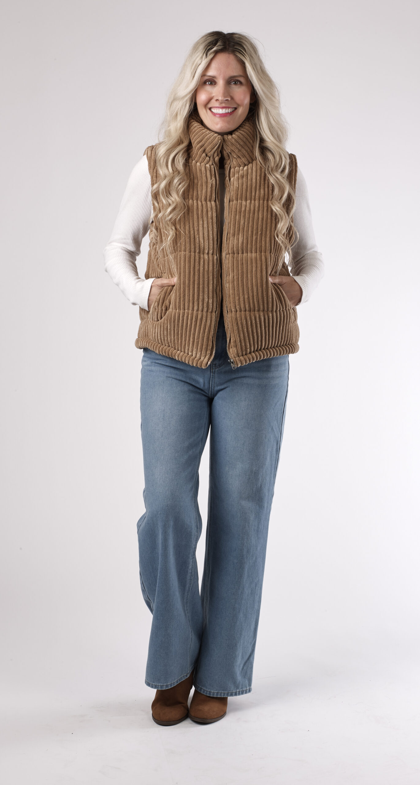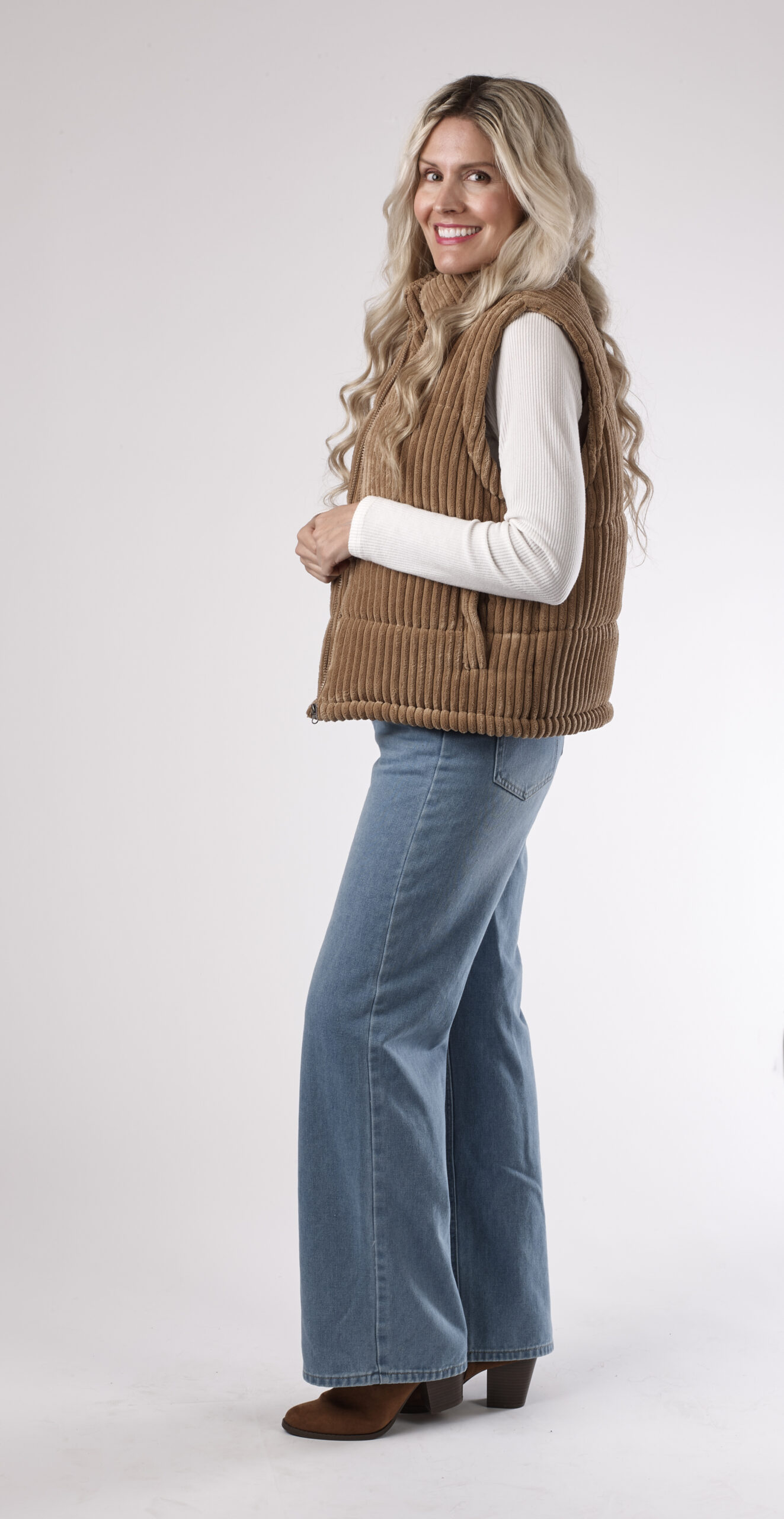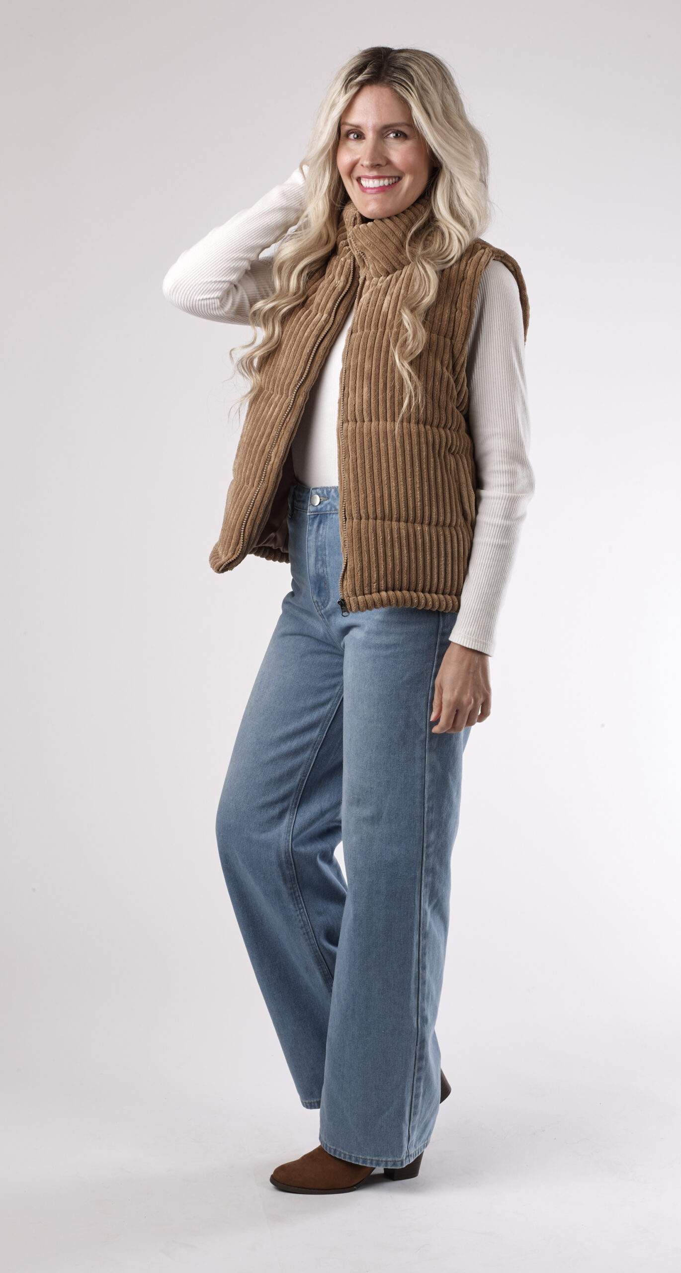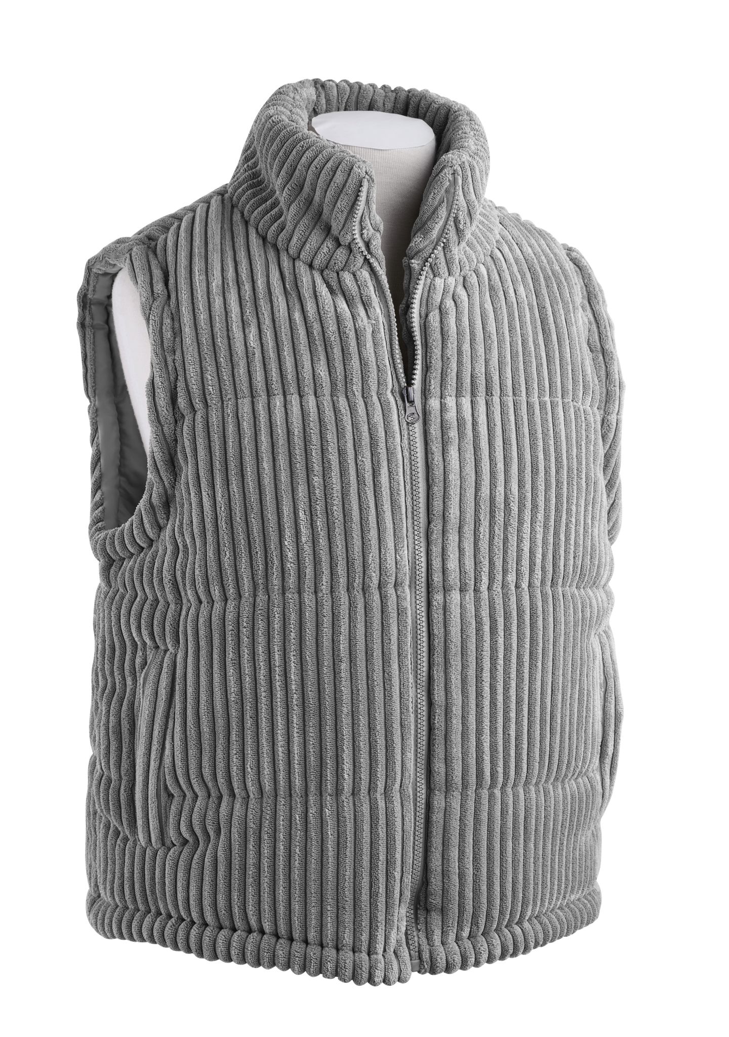 Built for warmth with a cool edge, this vest in classic corduroy with a modern puffer style is an instant seasonal favorite.