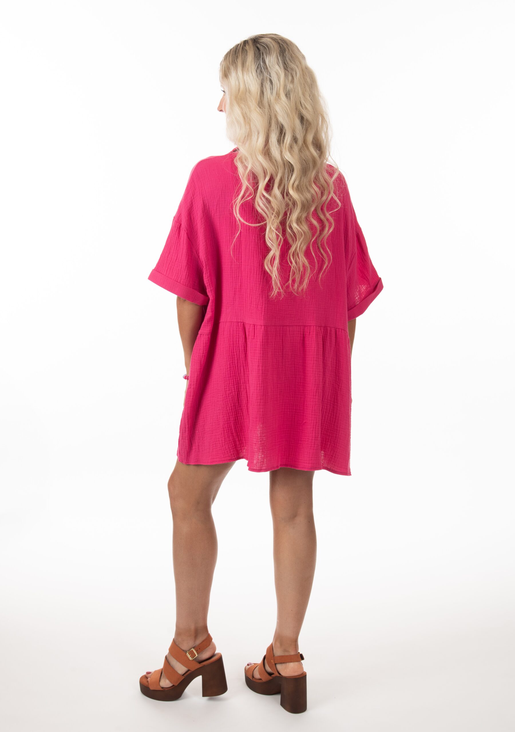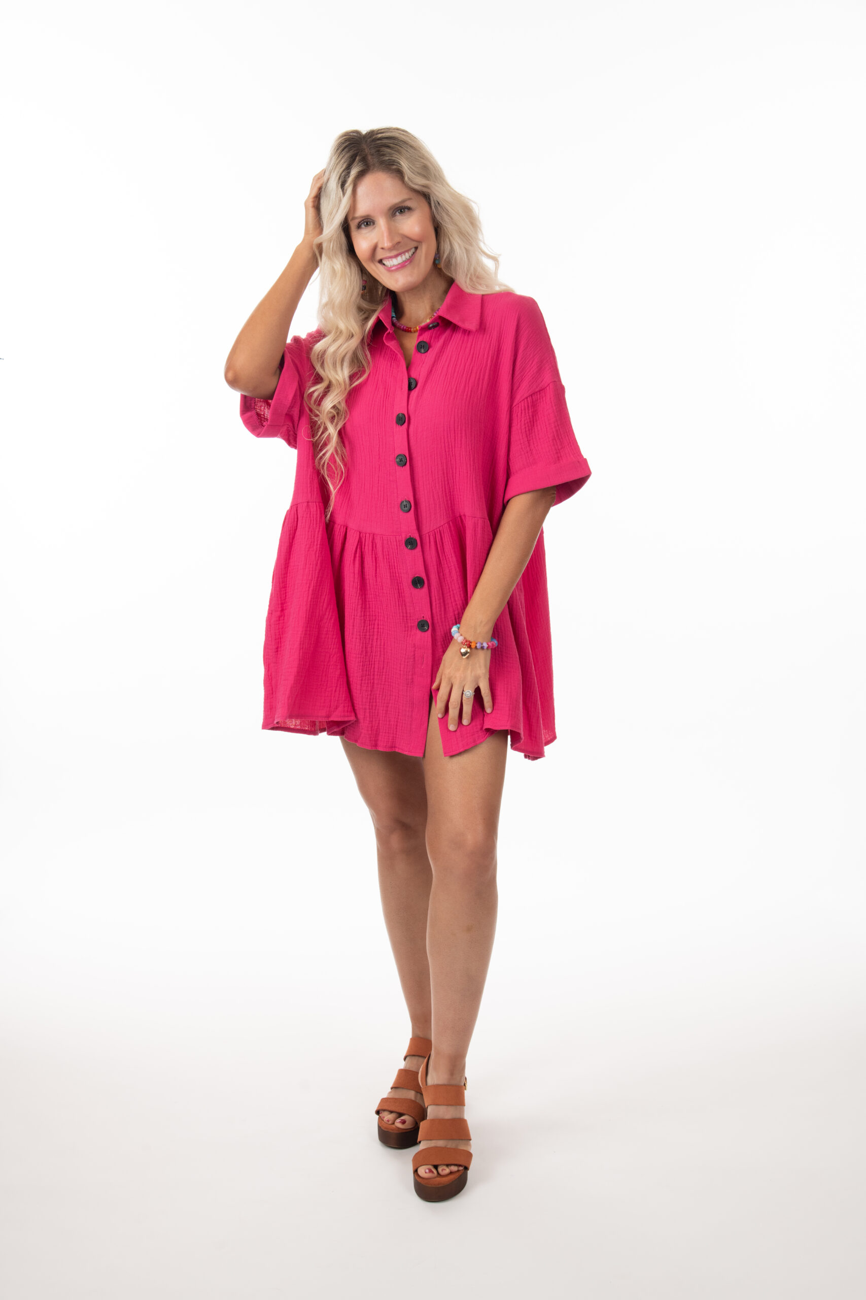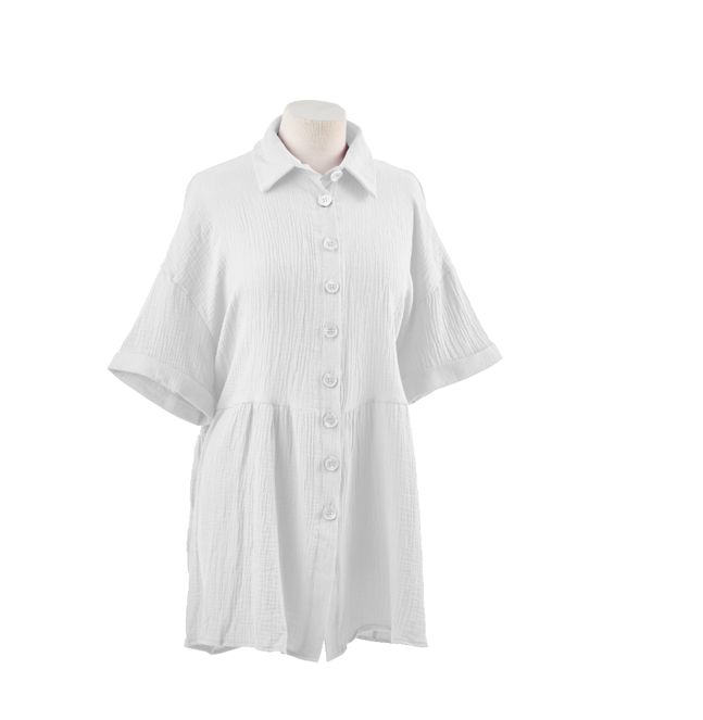 Cotton Gauze Collared Button Down Dress, 2 Assorted