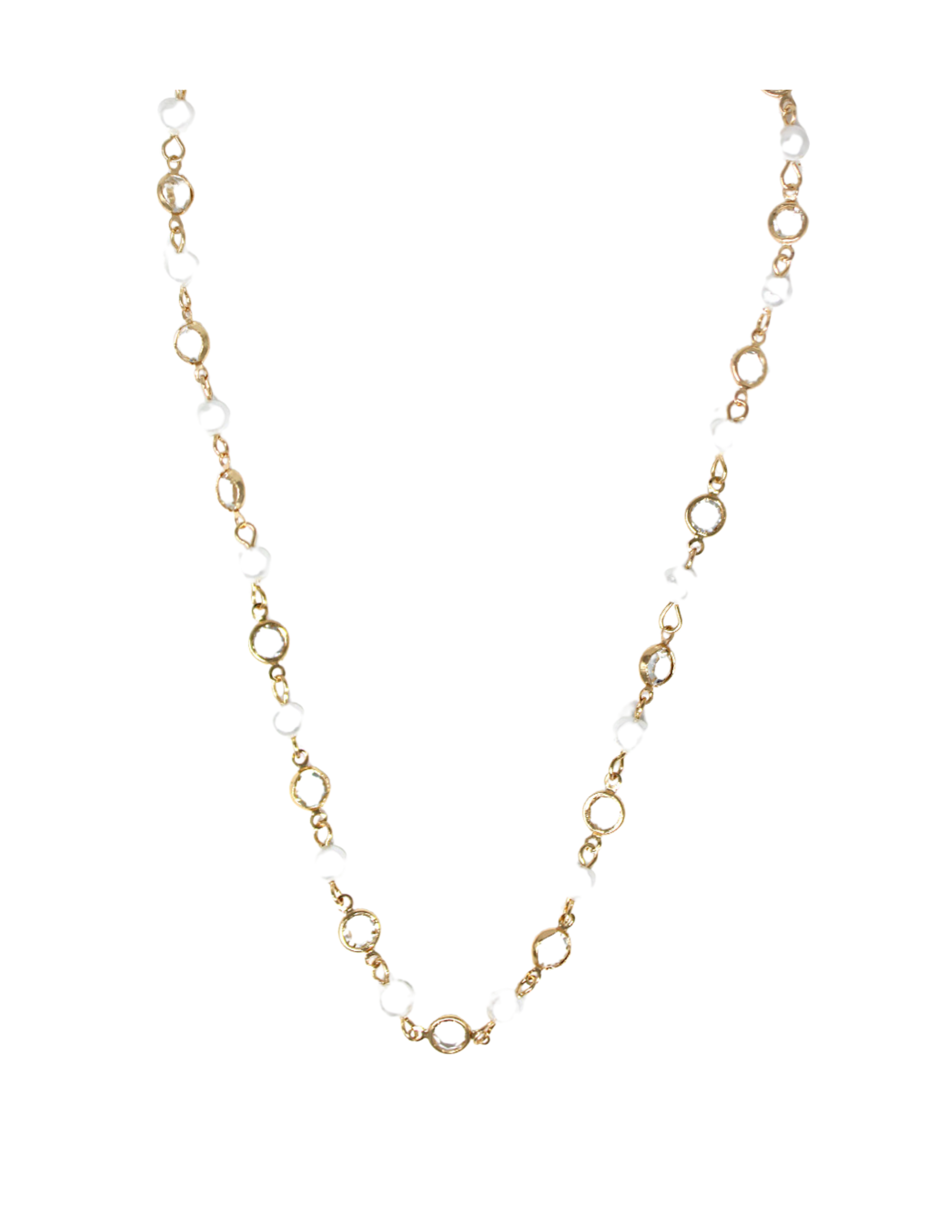 Crystal And Pearl Linked Necklace