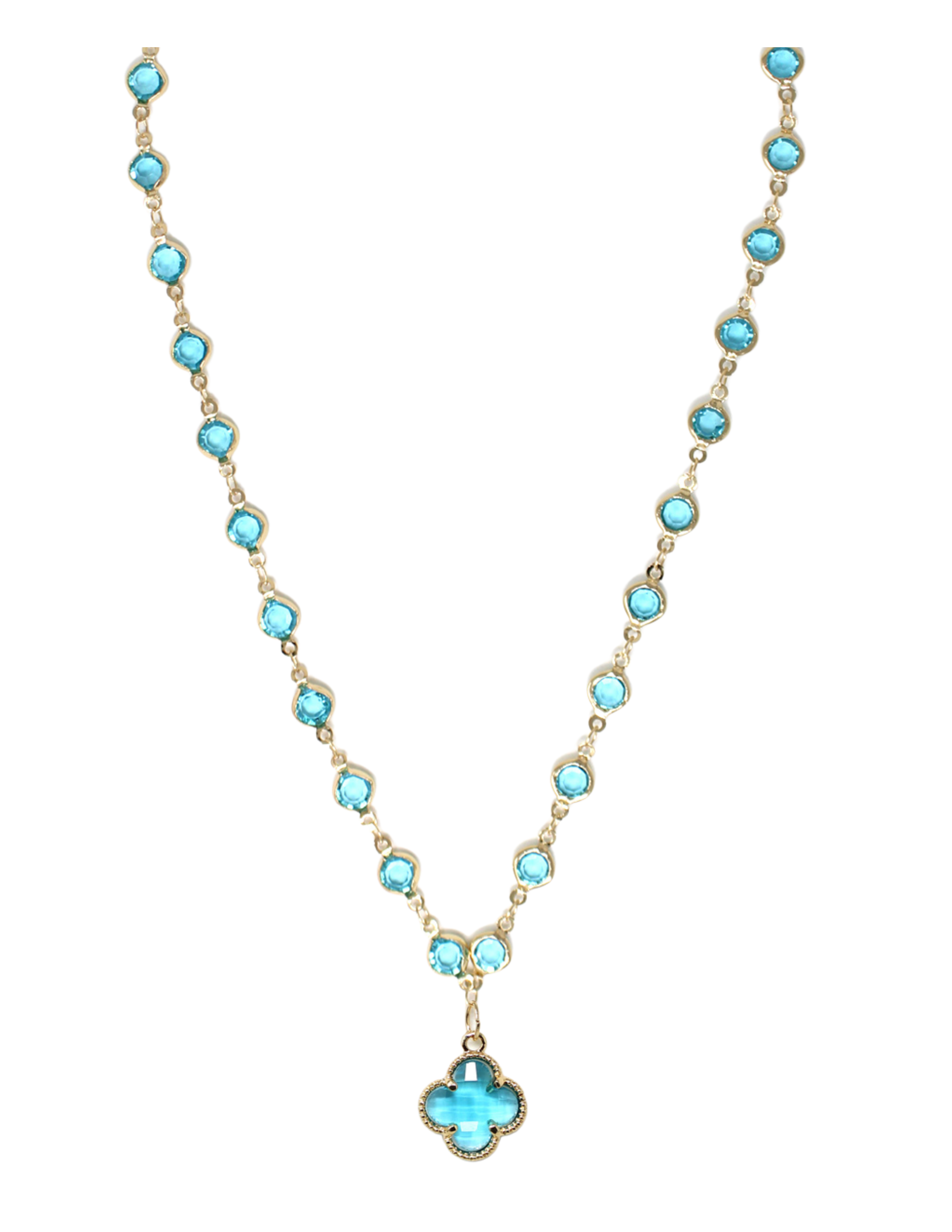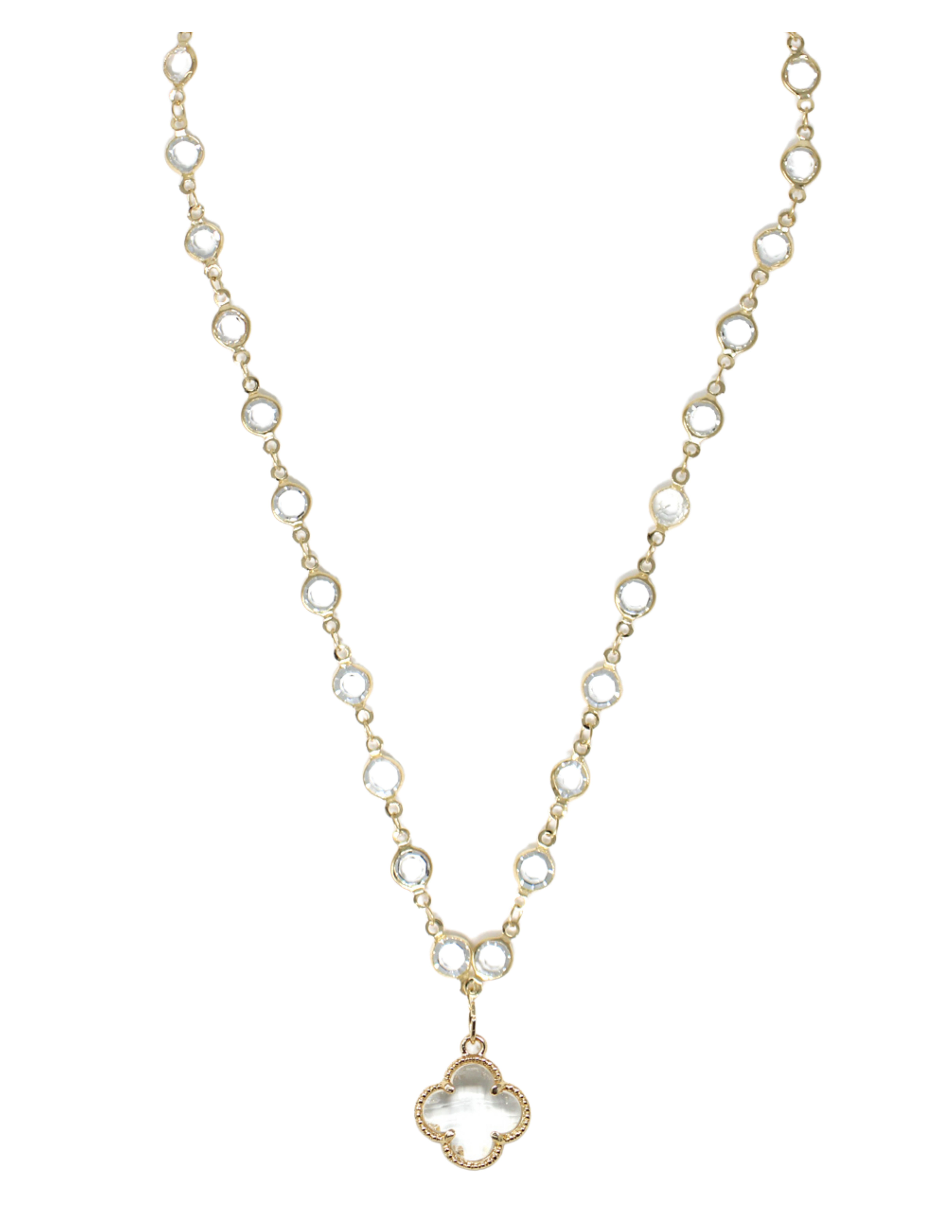 Necklace Crystal Link With Quatrefoil Pendant, 4 Assorted, 18″ + 3″