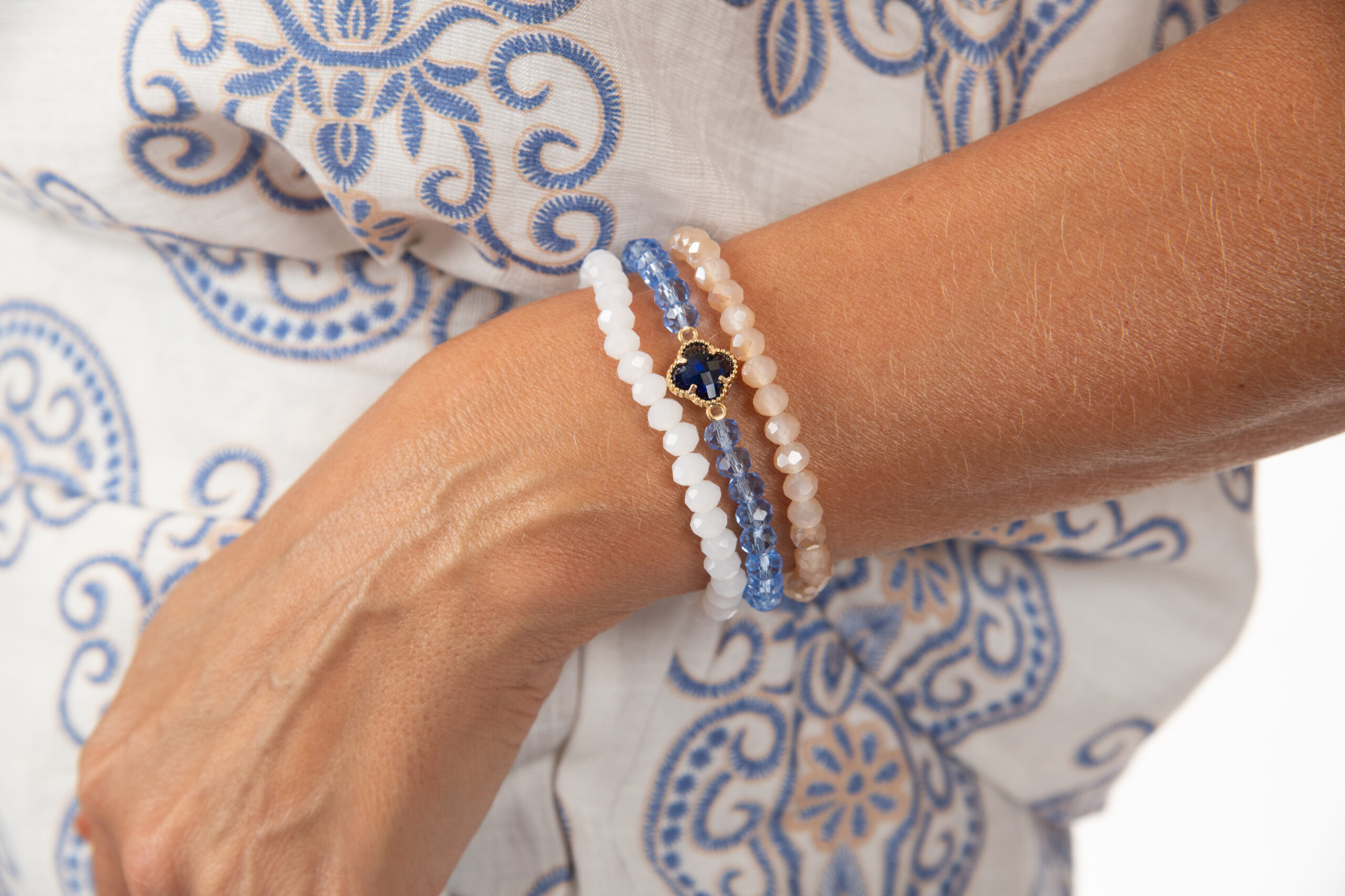 Bracelet Crystal Quatrefoil Stretch, 3 Assorted