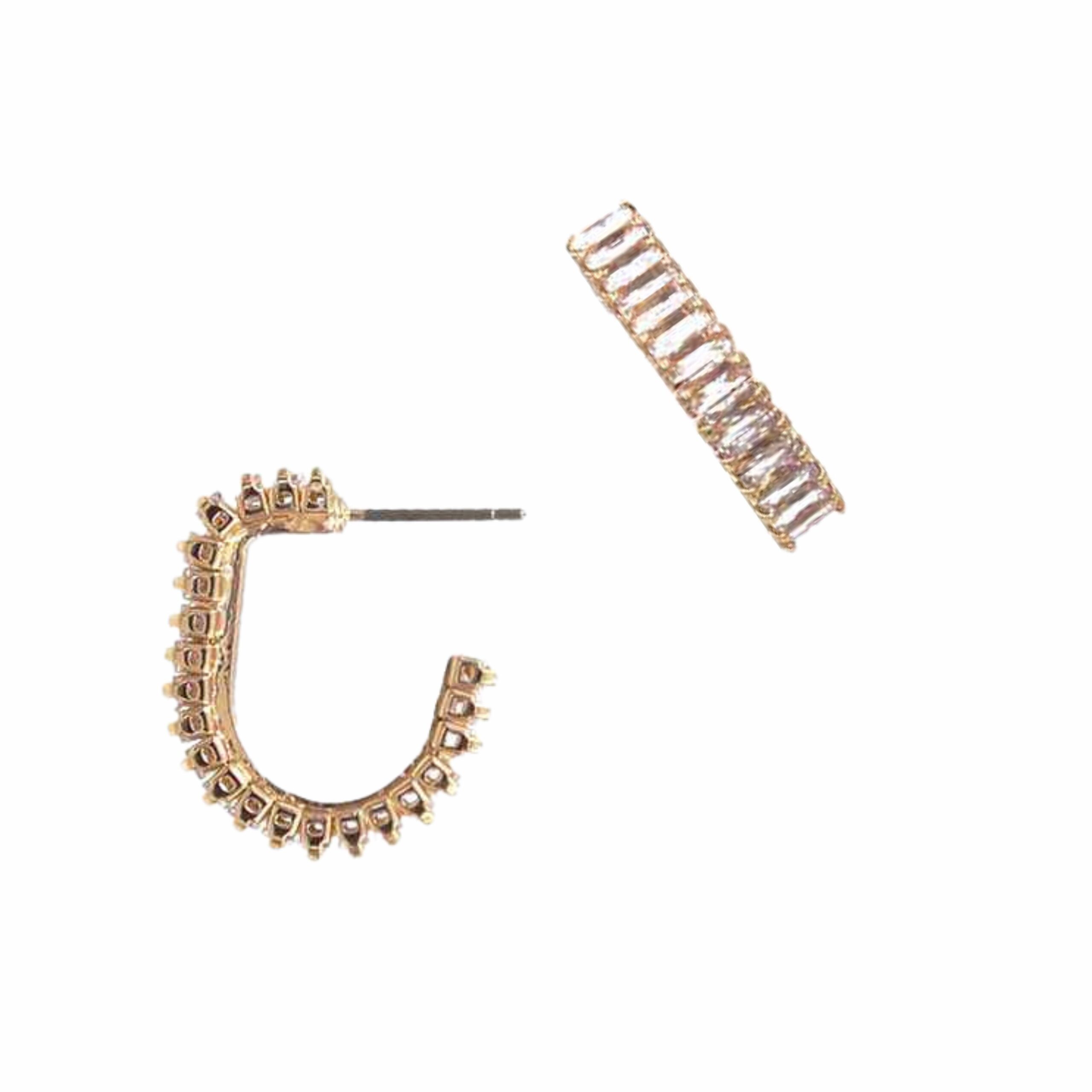 Earrings Cubic Zirconia Baguette Pave Crystal Hoop, .75″