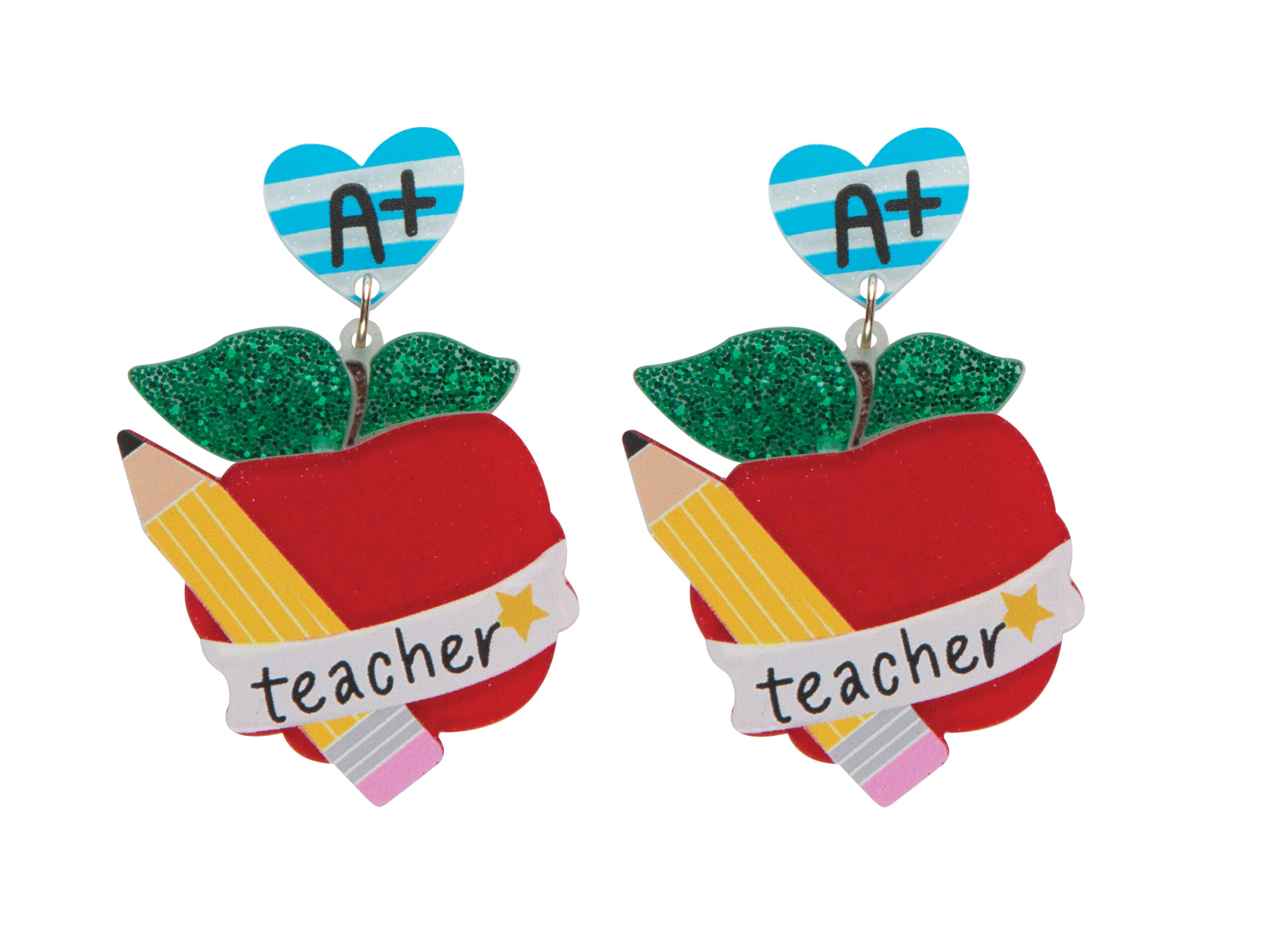 Acrylic sparkly apple “teacher”earrings, 2 assorted