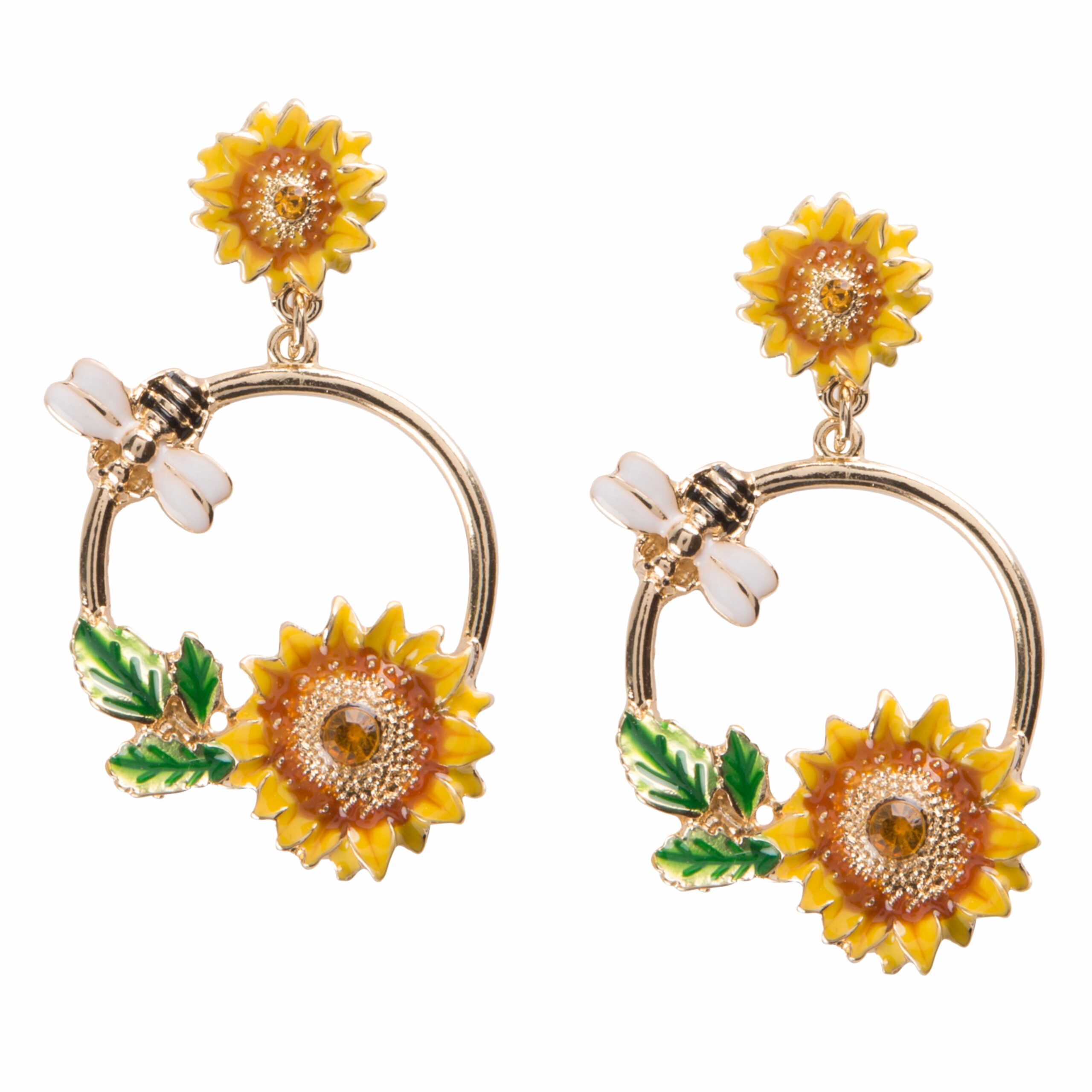 Sunflower and bee circle earrings