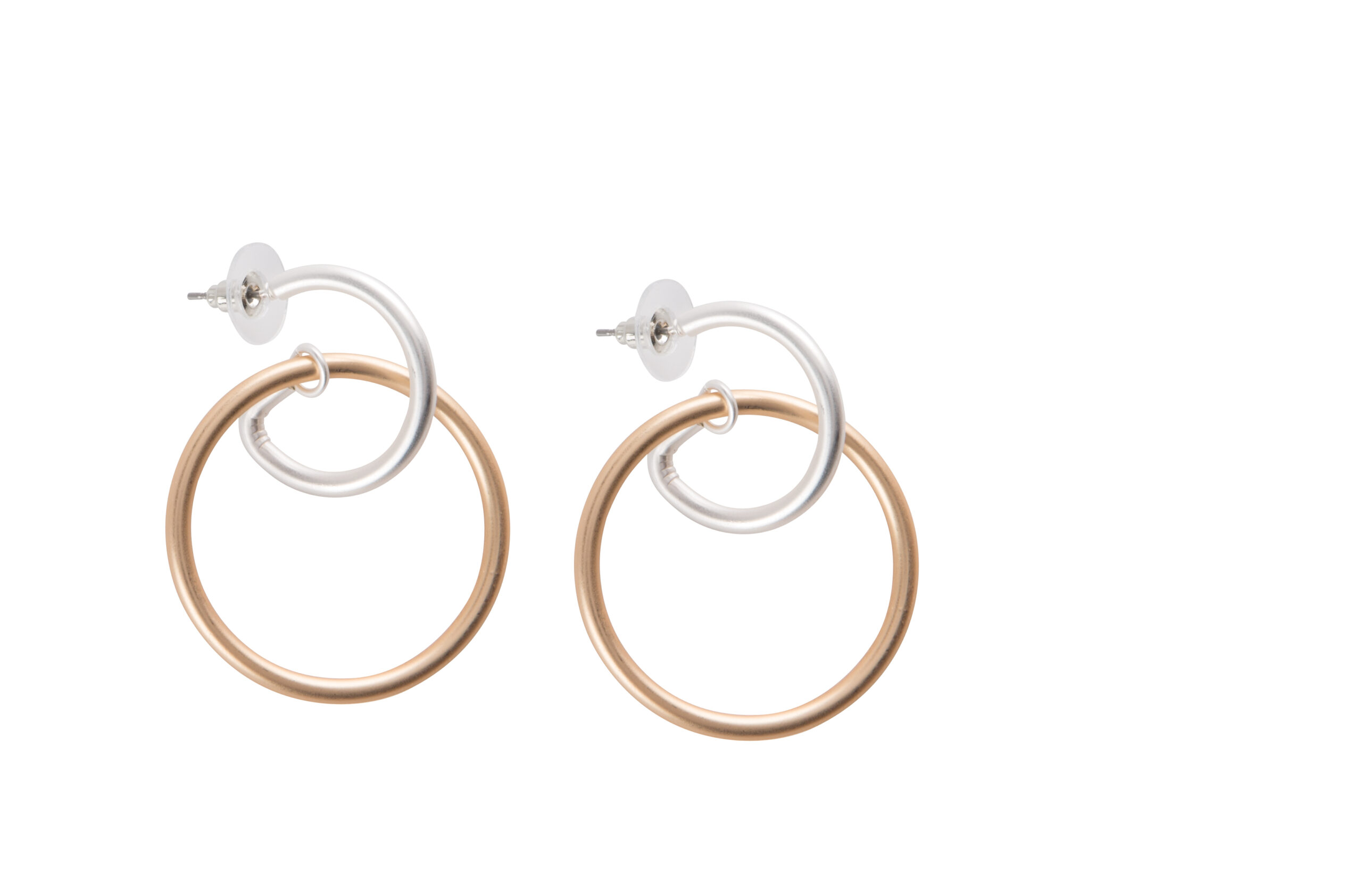 Earrings two tone circle linked hoop, 2 assorted, 1.5″