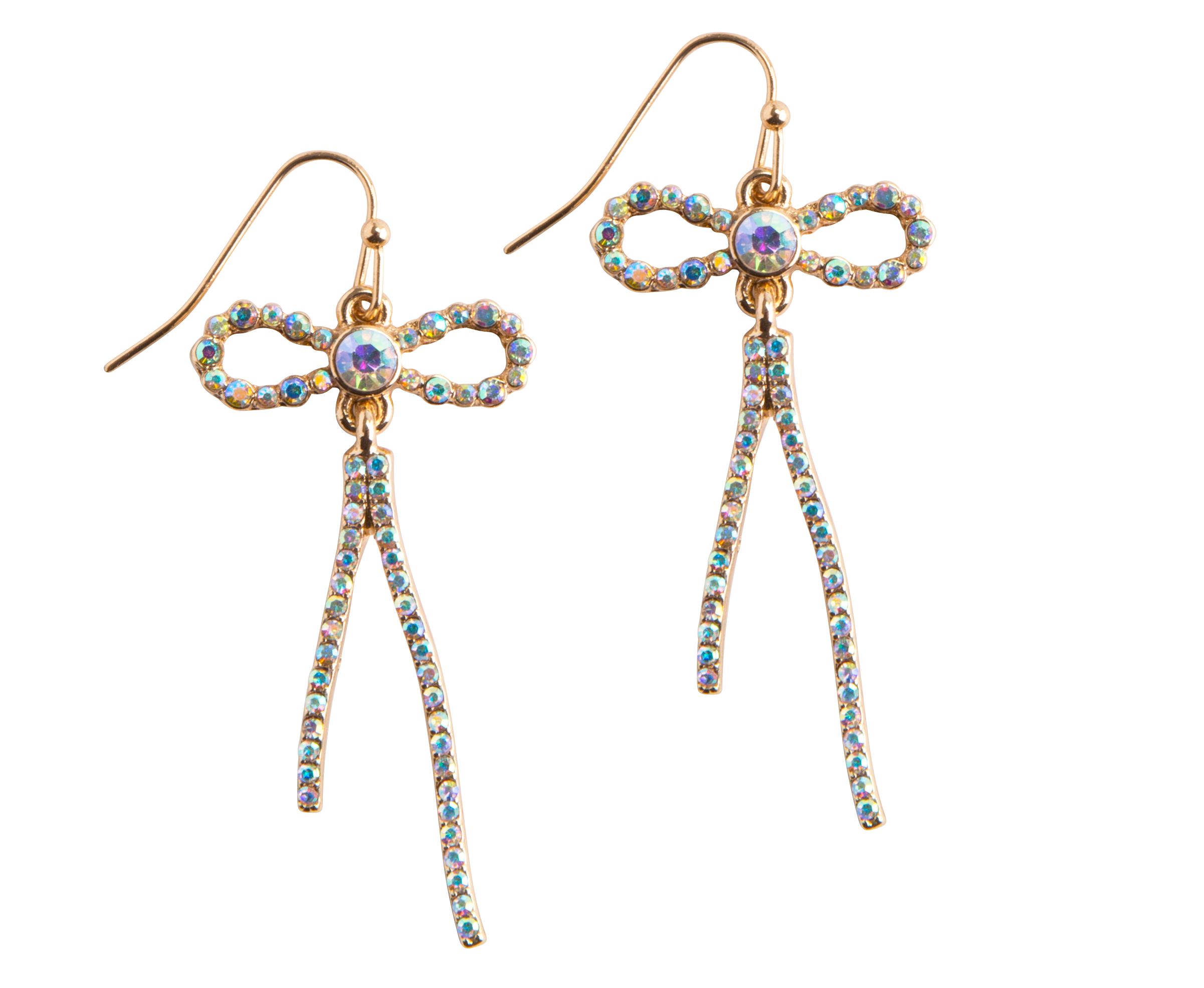 Earrings Gold Crystal Bow Ribbon, 2″