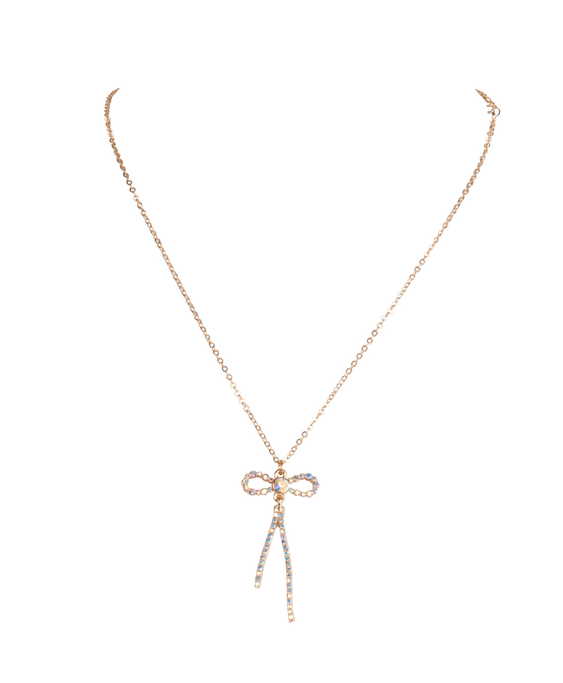 Necklace Gold Crystal Bow Ribbon , 15.75″ + 3″