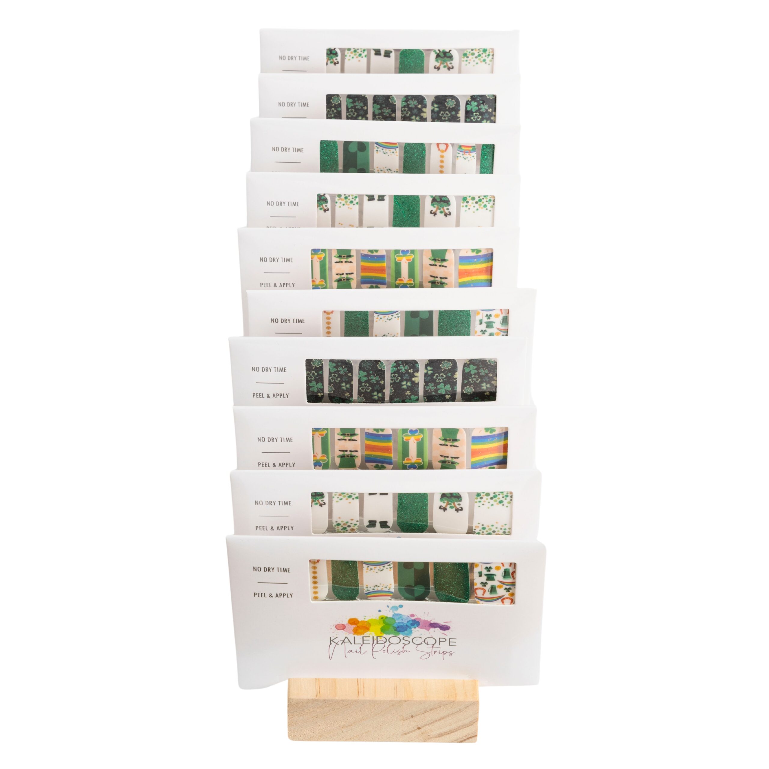 Kaleidoscope Nail Strips: ST. Patty’s Day Collection,10 Designs, 30 Envelopes, Free Display