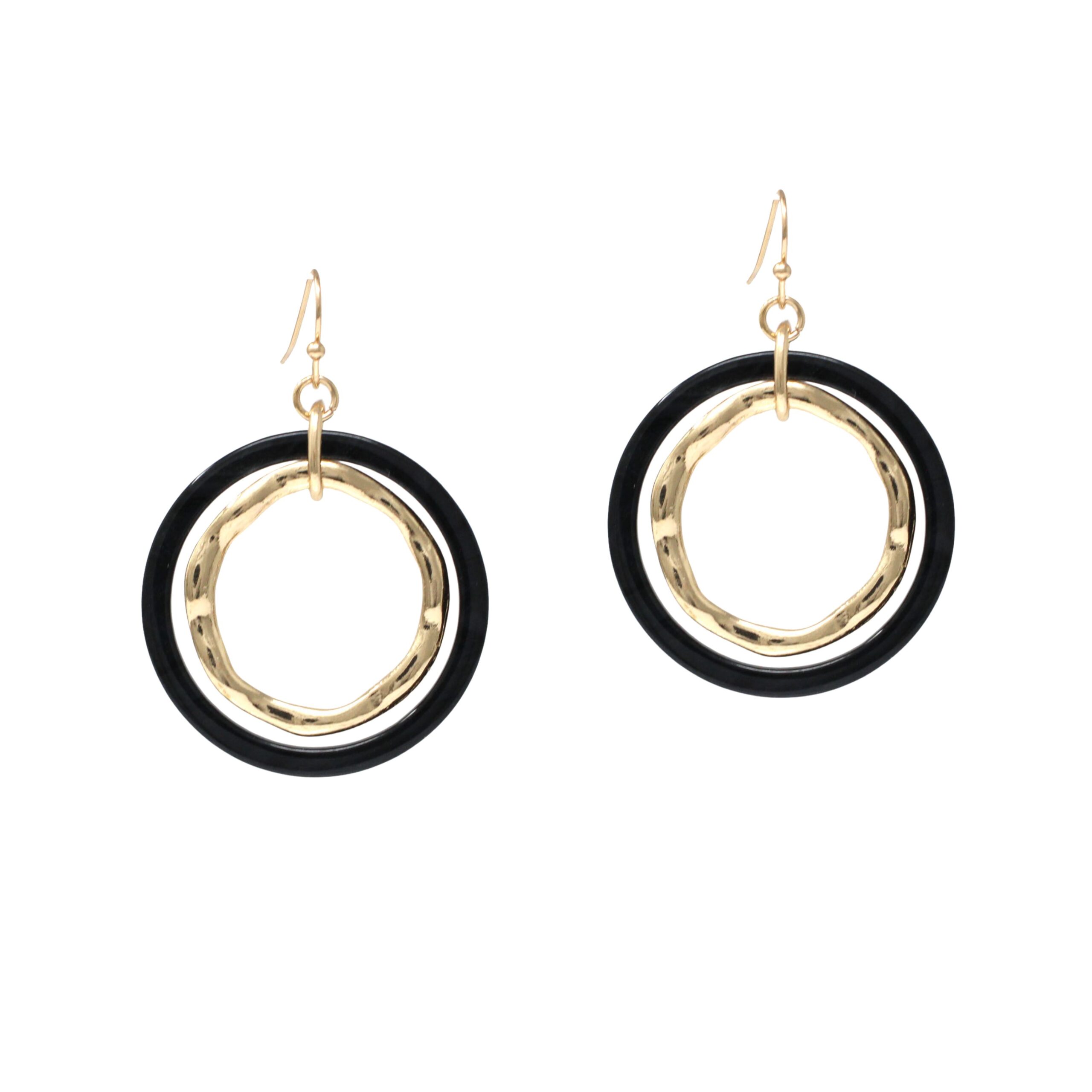 Earrings Layered Resin Metal Circle, 2 Assorted, 1.75″