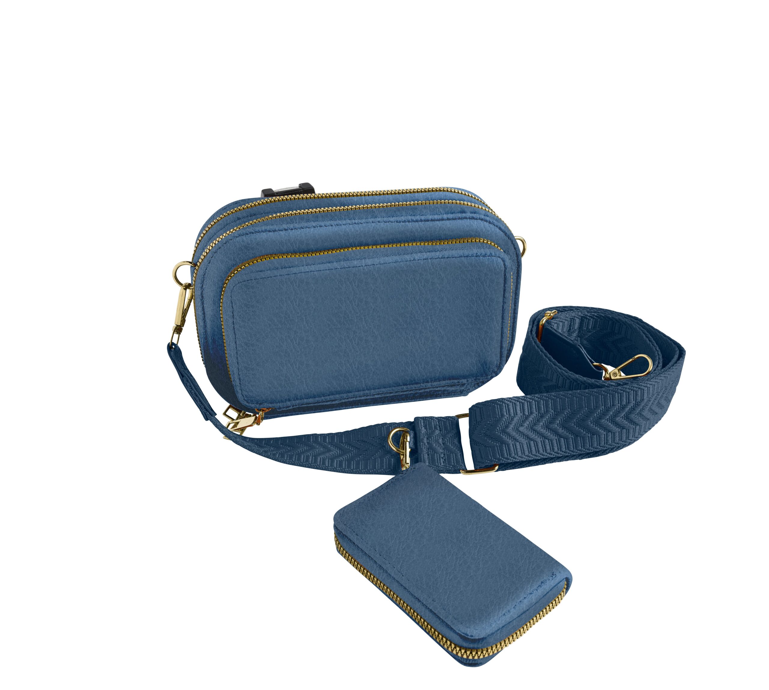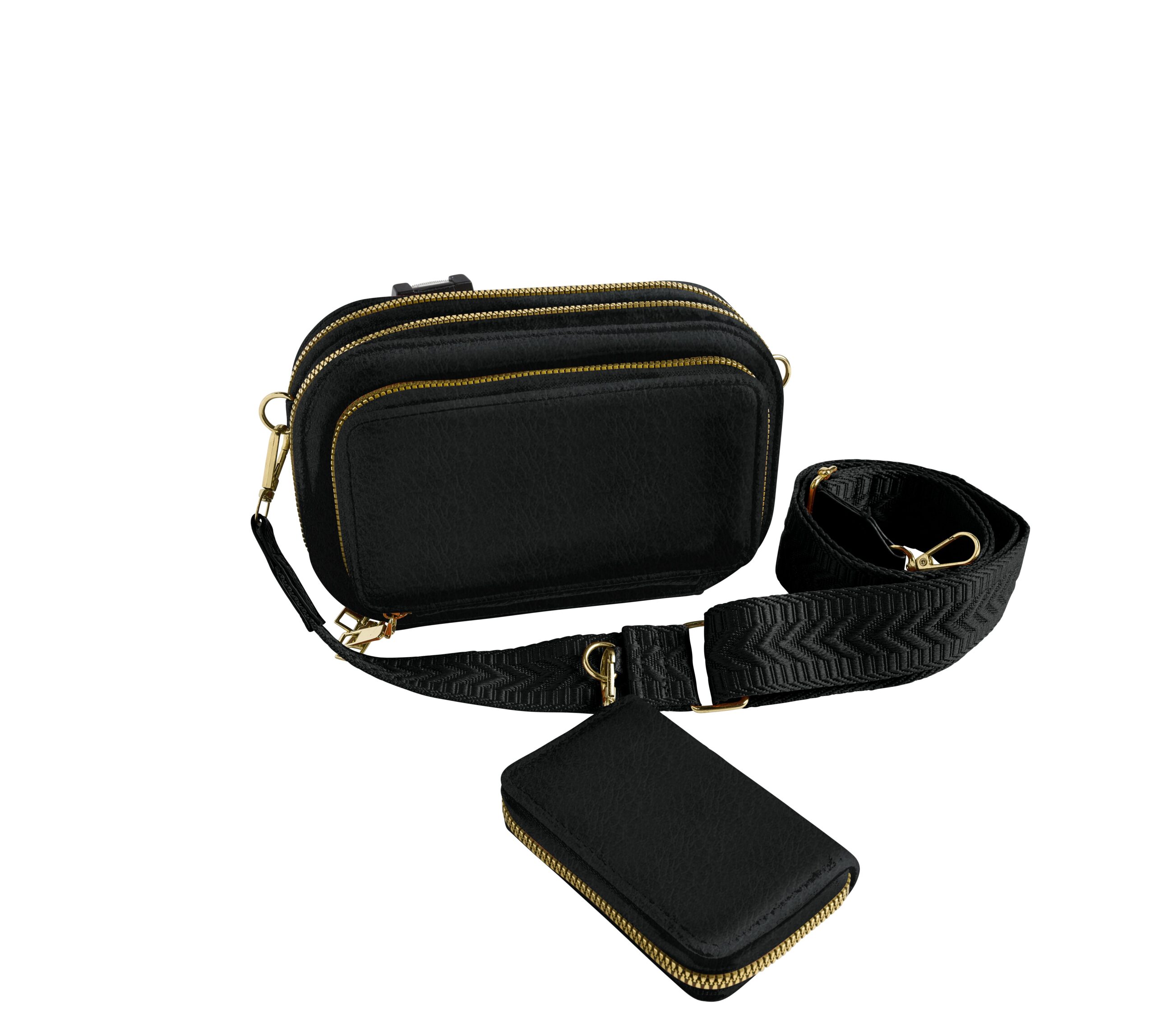 Crossbody Three Zipper Rectangle Bag With Keychain Wallet And Comfort Strap, 4 Assorted