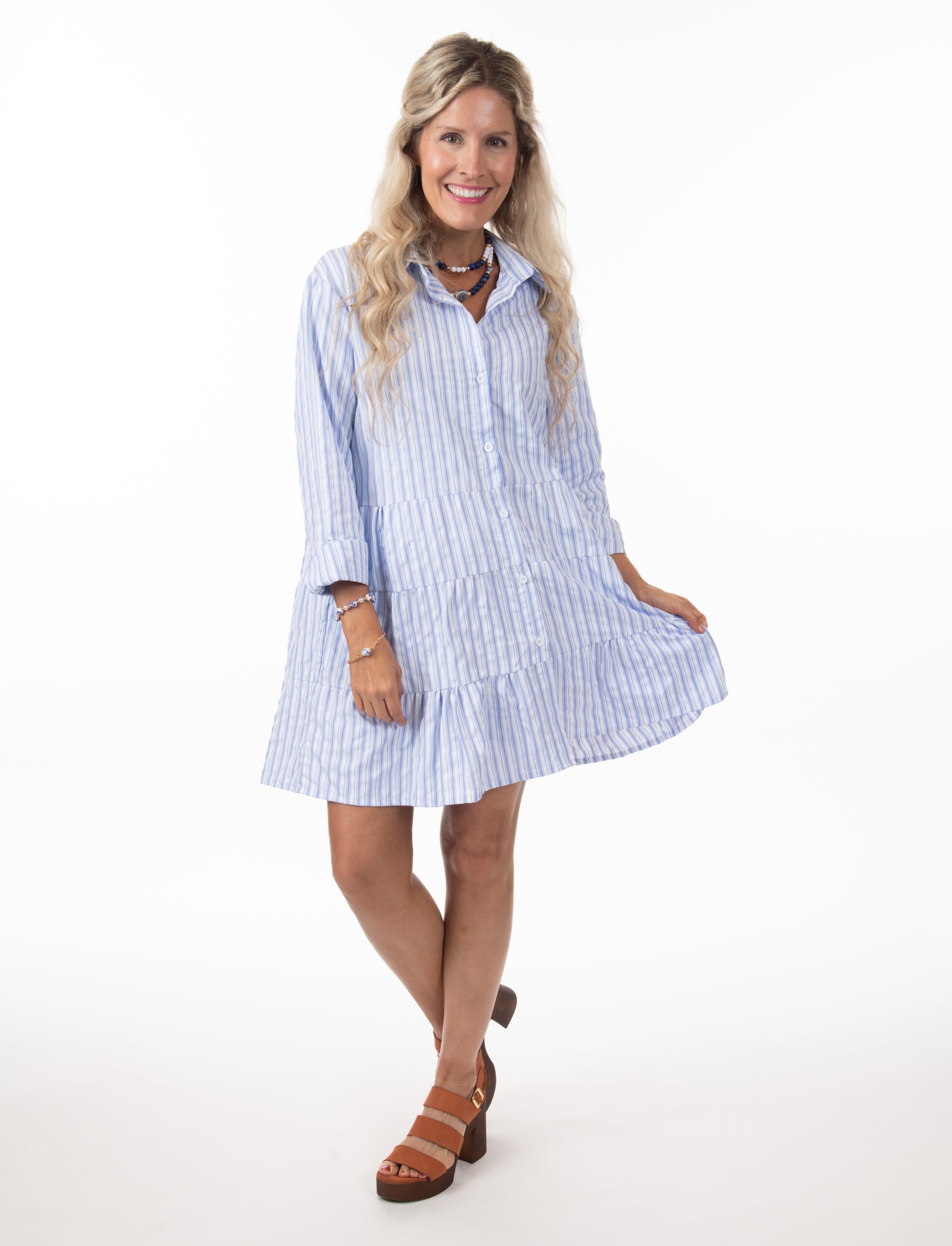 Preppy and Fun! This Striped Button-Down Dress offers effortless style with a chic tiered design and button-down detail. Available in 2 classic colors, this dress is perfect for dressing up or down. Pair it with heels for a polished look or sneakers for casual cool. Your wardrobe, your rules!