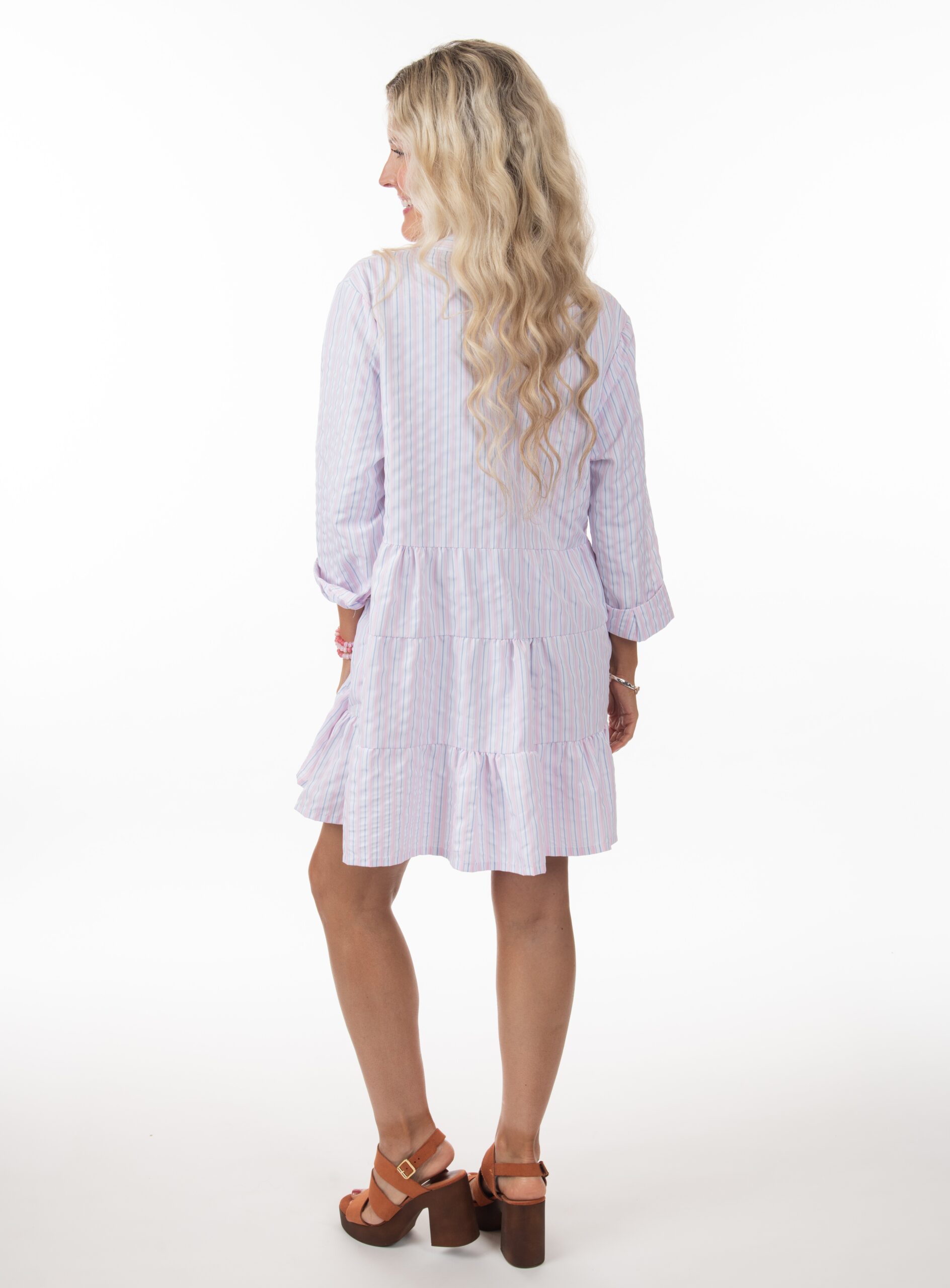 Long Sleeve Tiered Stripped Button-Down Dress, 2 Assorted
