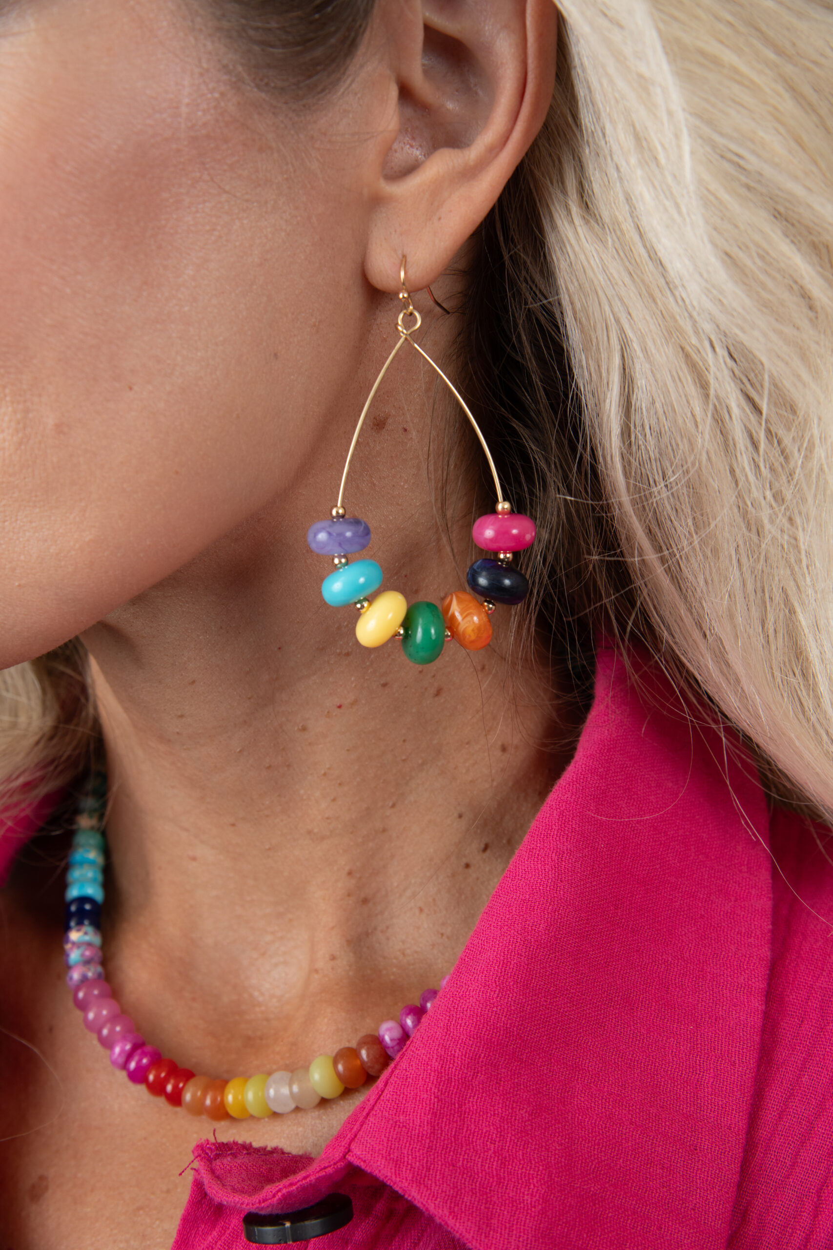 Earrings Marbel Beaded Teardrop, 1.75″