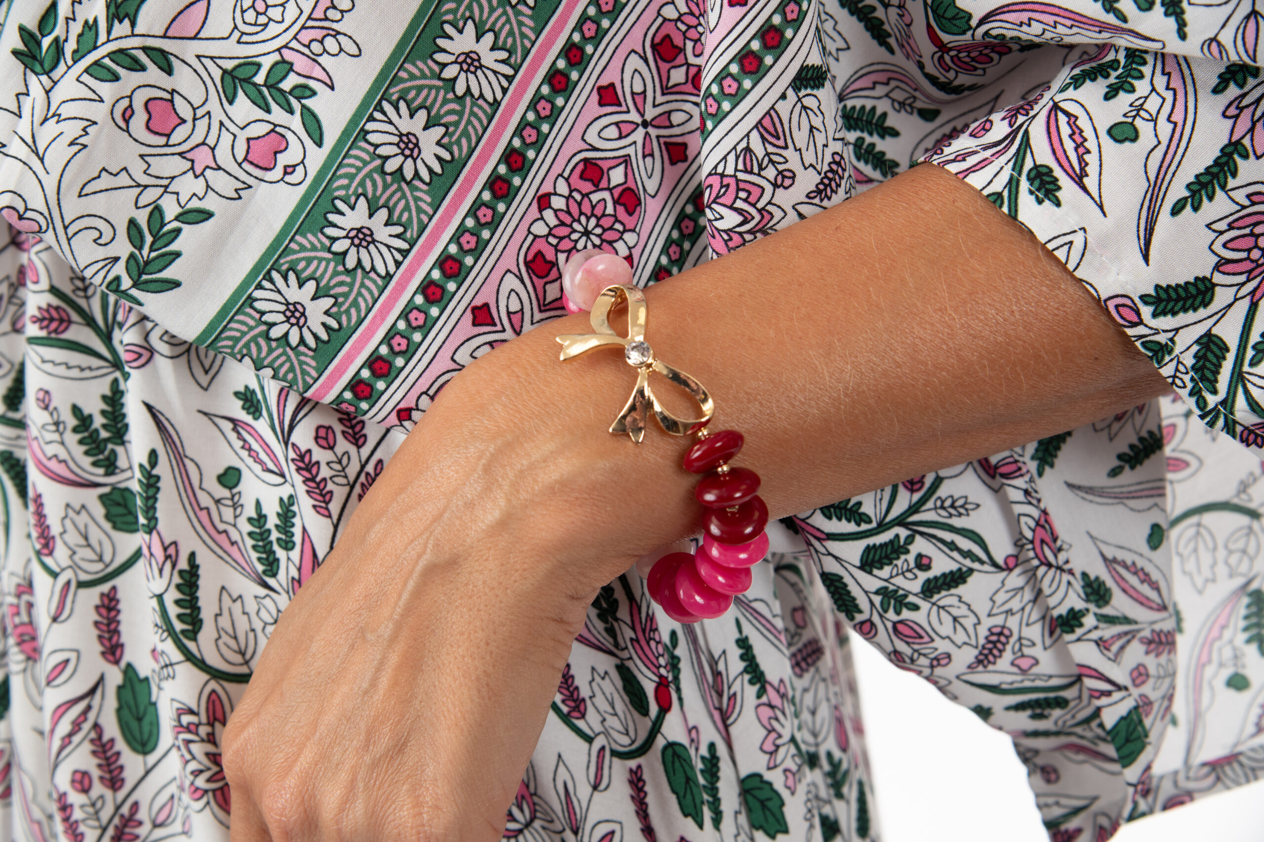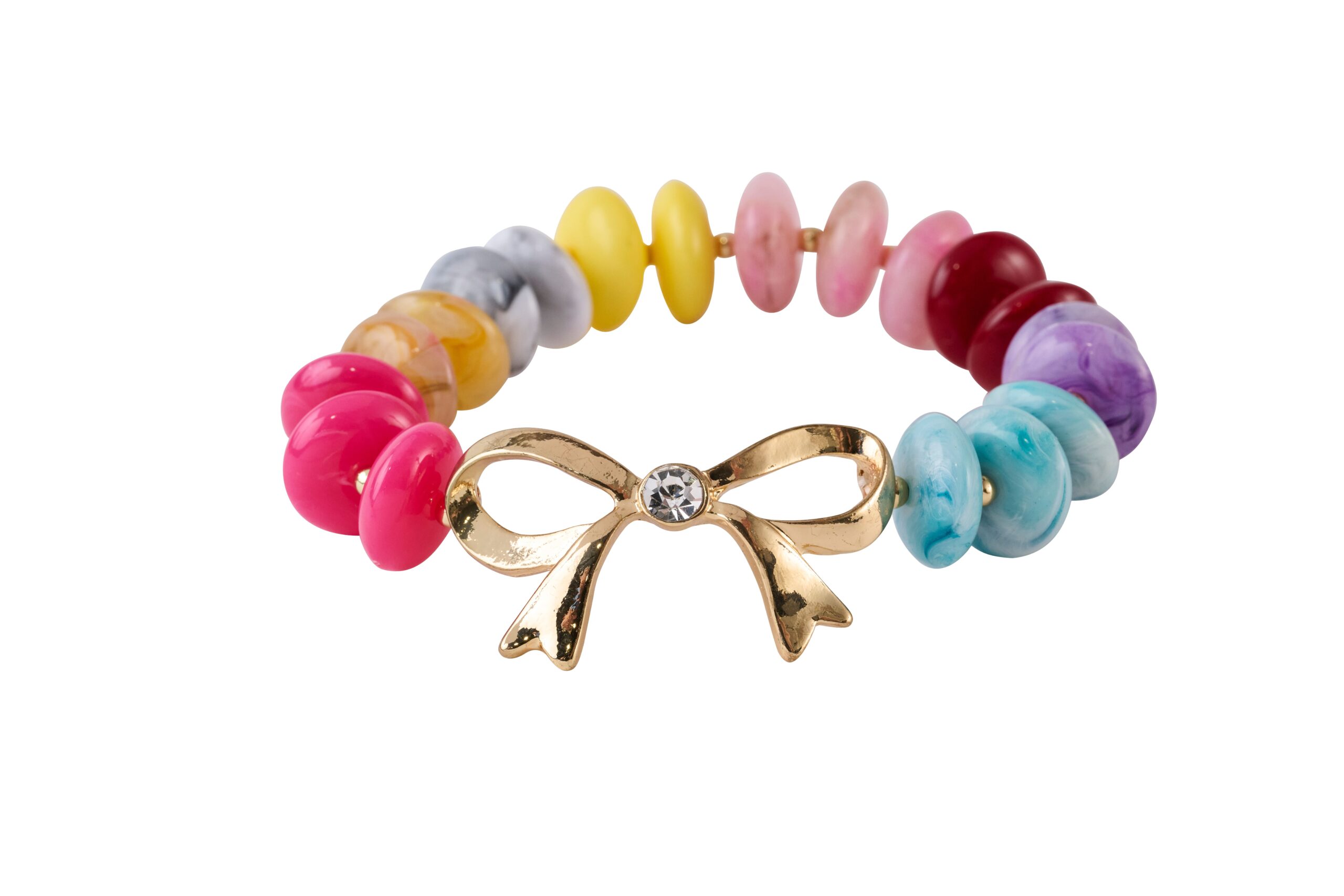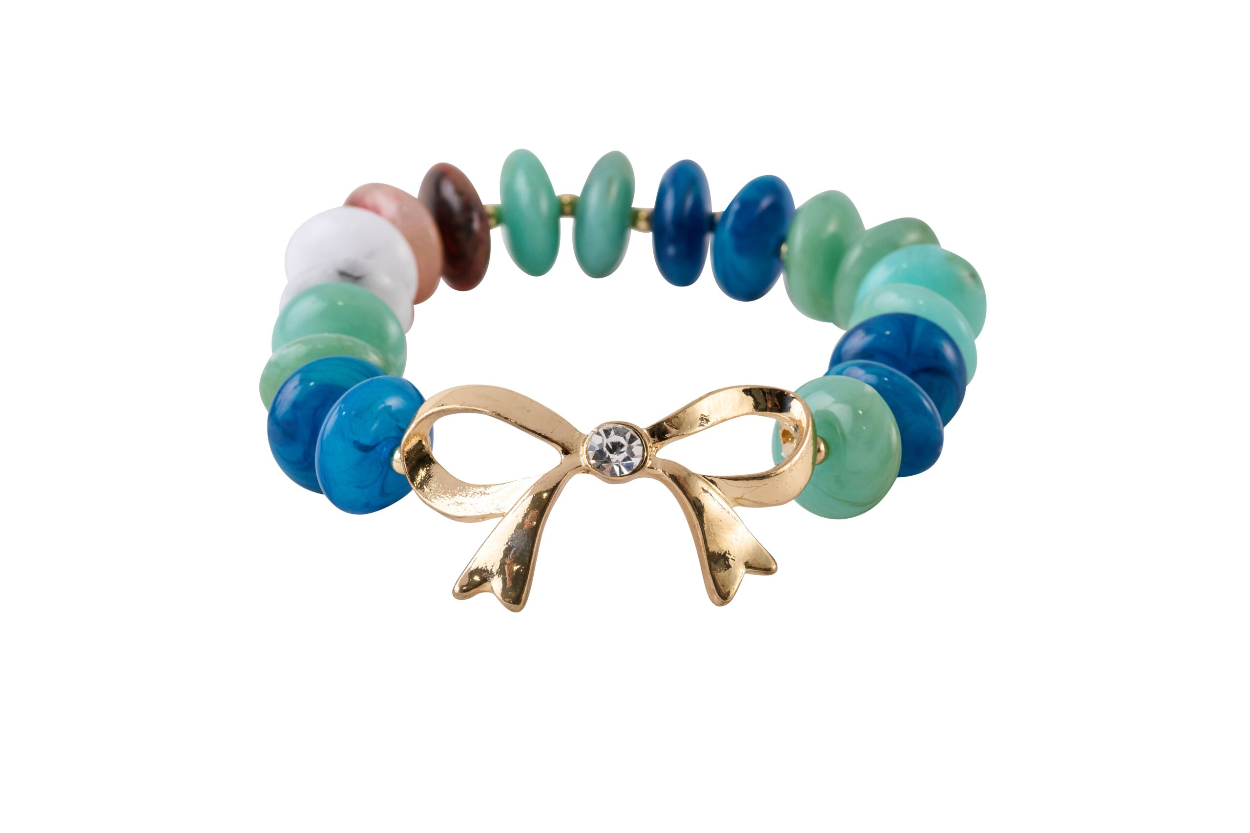 Bracelet Marble Beaded And Rhinestone Bow Stretch, 3 Assorted