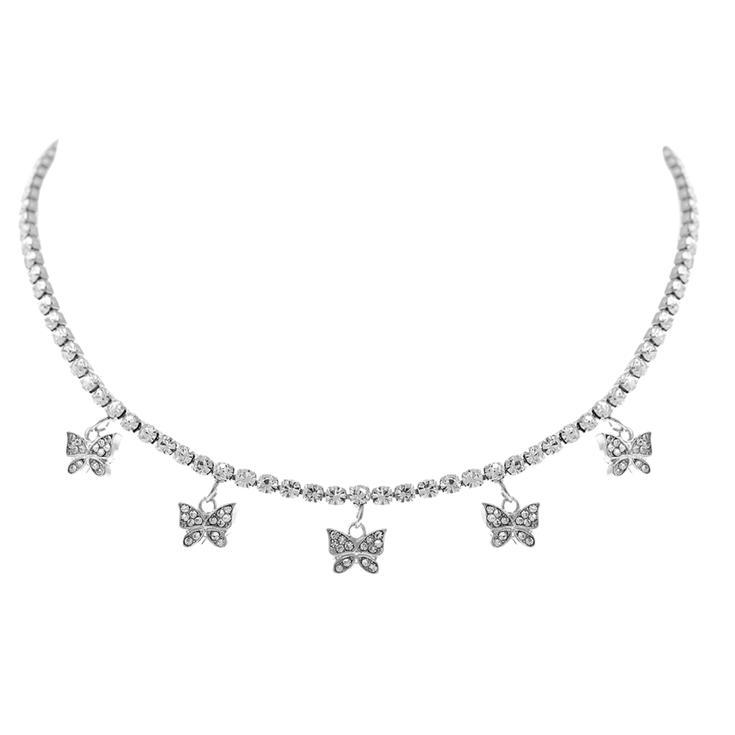 Cubic Zirconia mini butterfly pendant necklace, 2 assorted