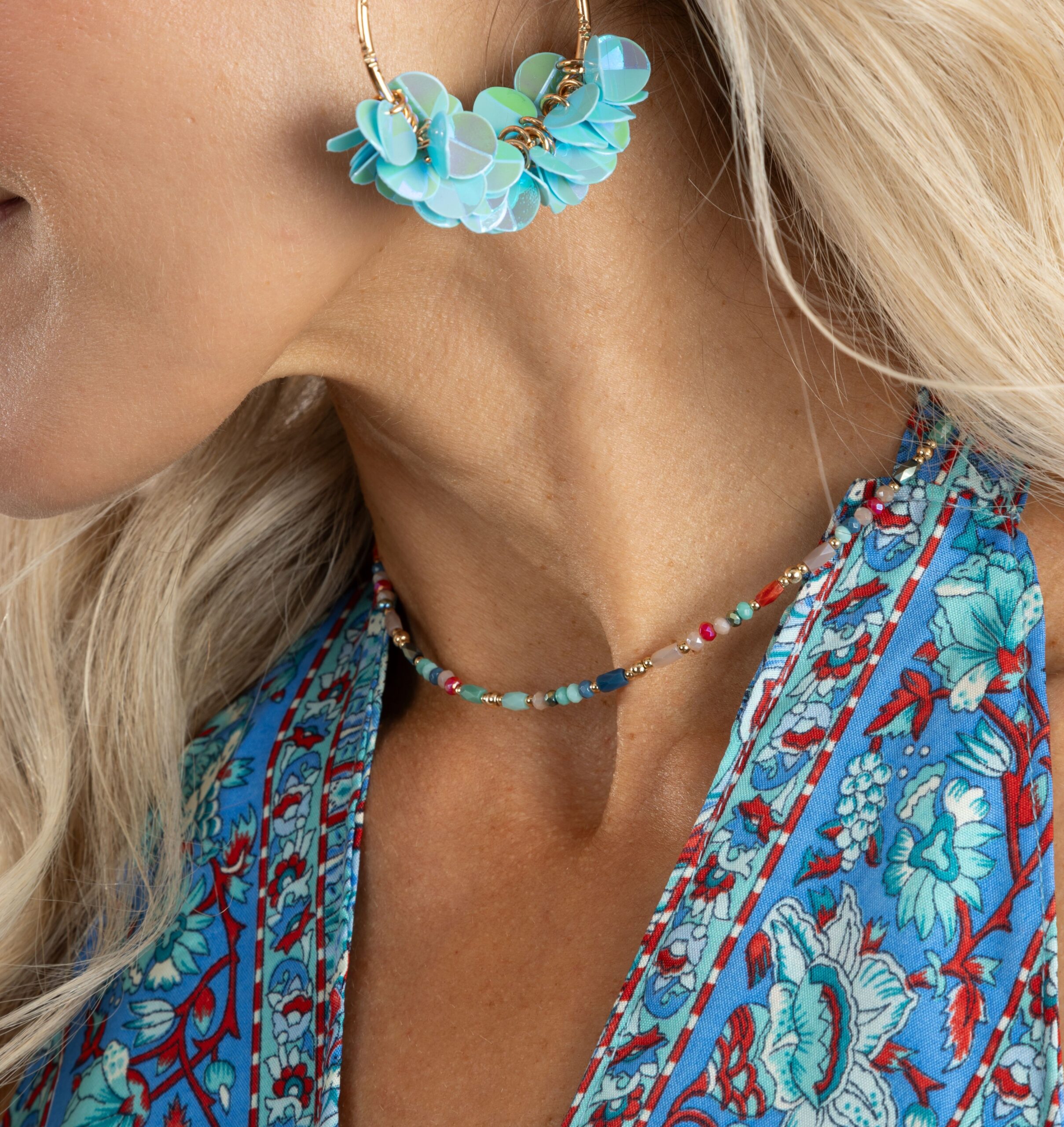 Multicolor faceted cut bead chocker necklace