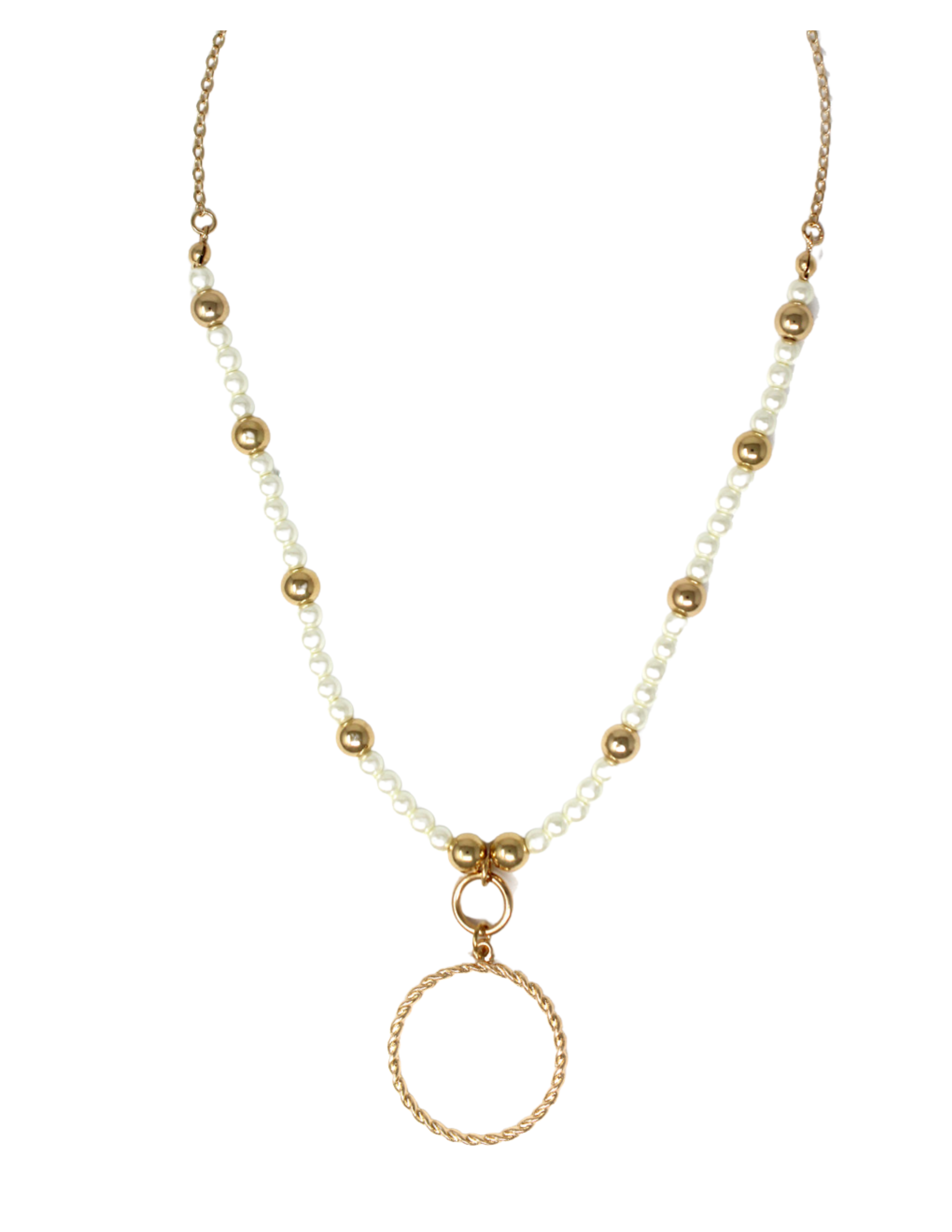 Necklace Pearl Bead With Twisted Circle Pendant, 2 Assorted, 17.5″ +3″