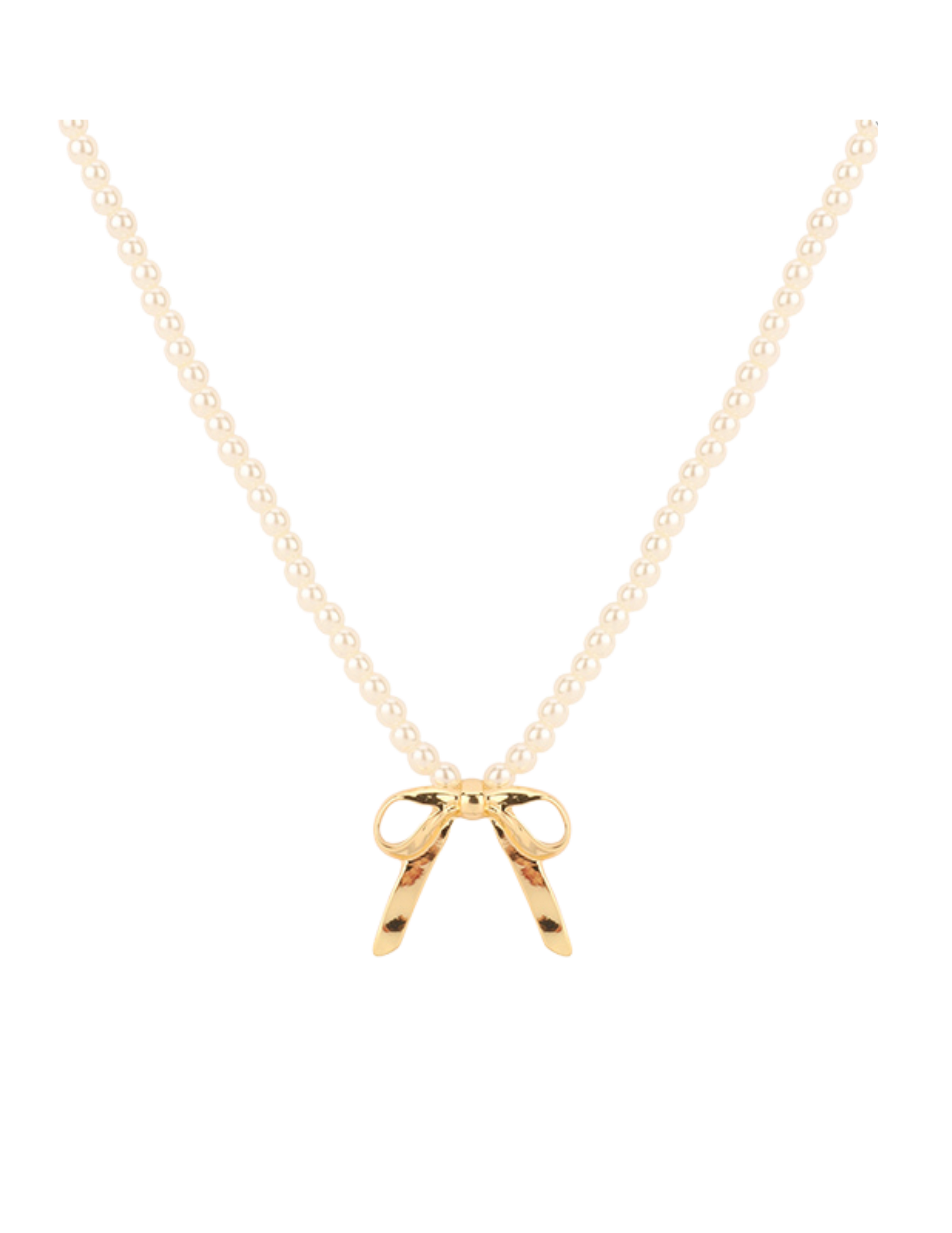 Pearl Beaded With Gold Bow Necklace