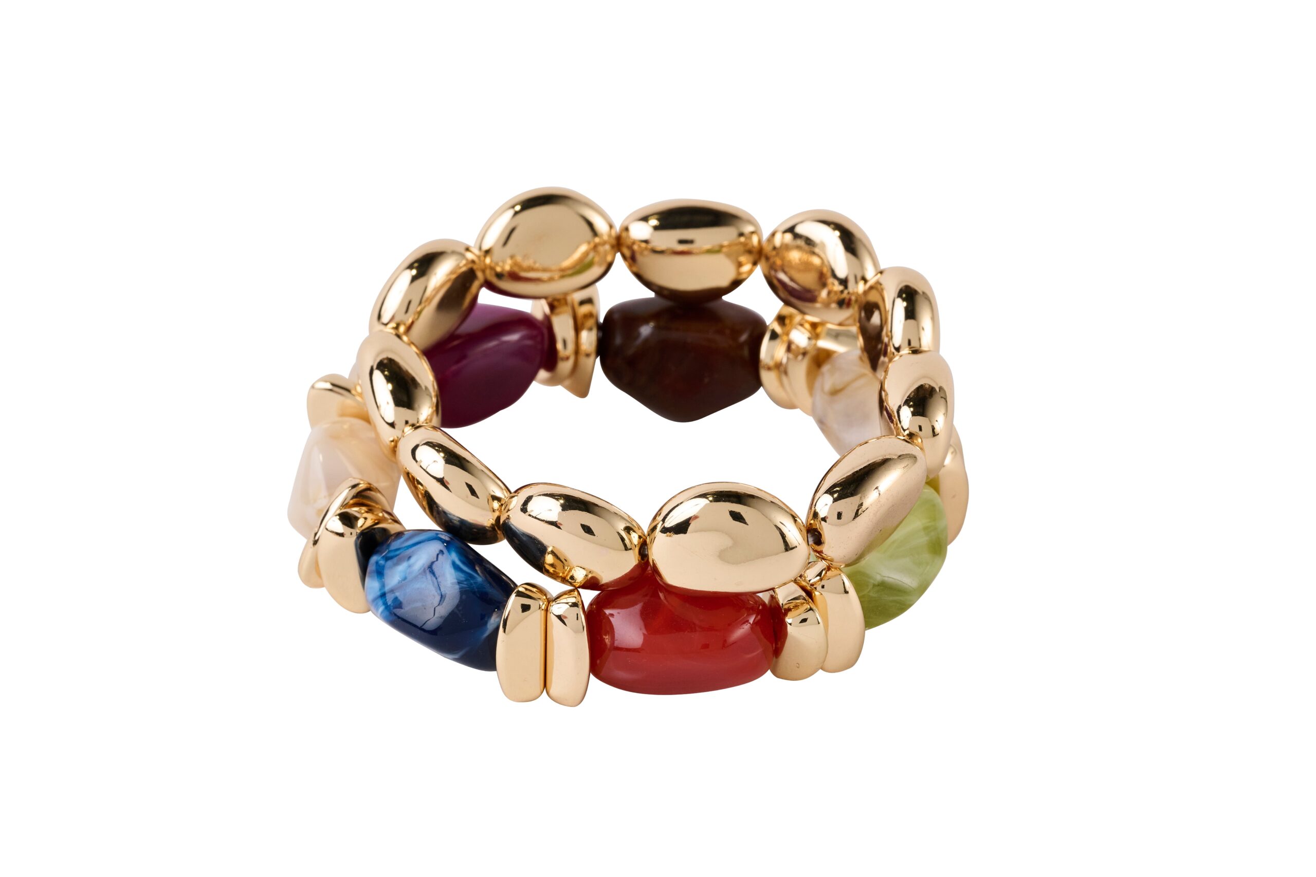 Stackable Gold And Marble Bead Stretch Bracelet, 2 Assorted