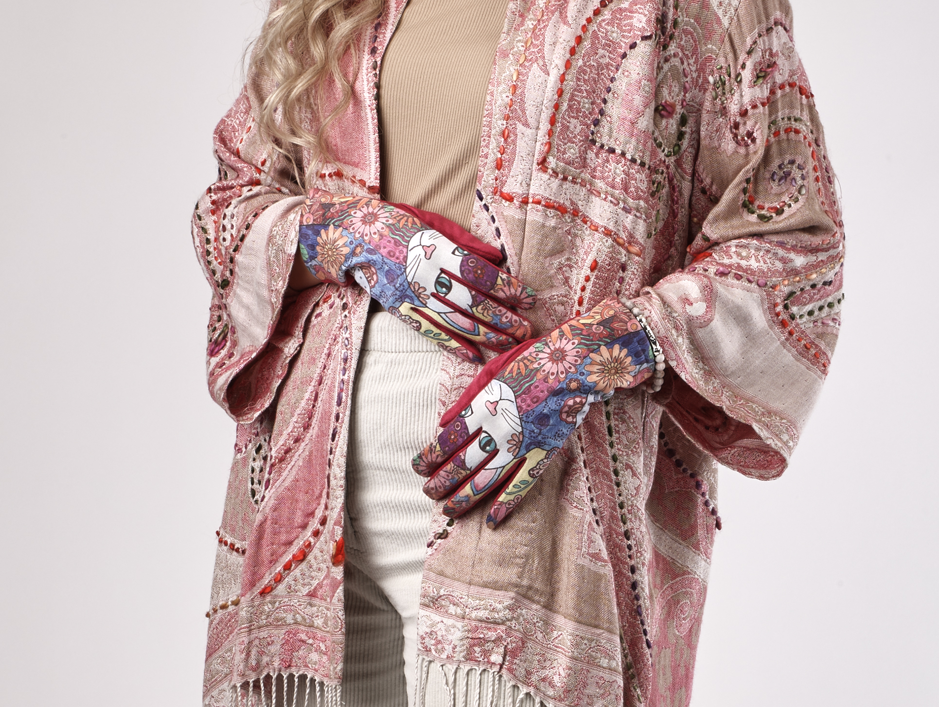 Gloves Suede Cat Patterned, Touchscreen, 4 Assorted
