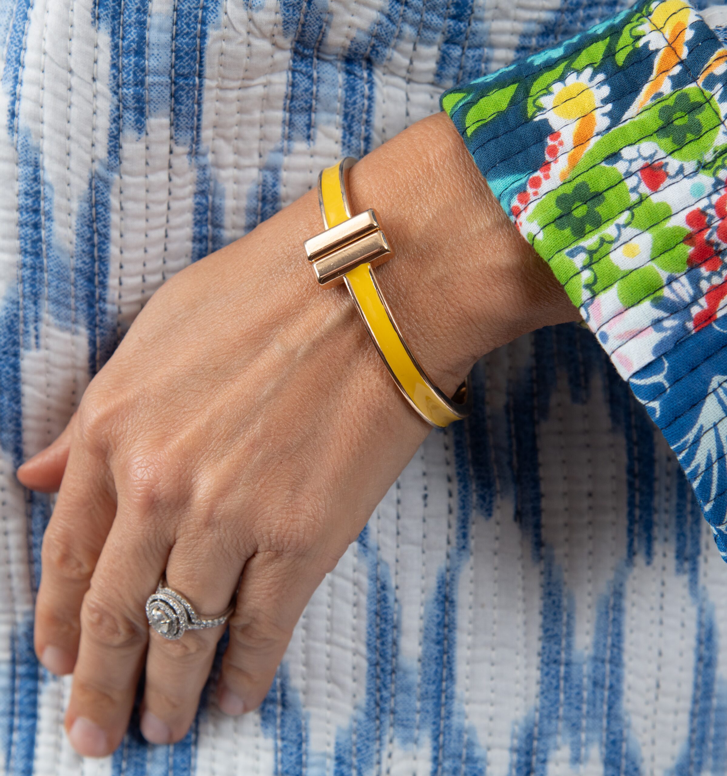 T-Shaped Epoxy Bangle, Spring Hinge Bracelet, 4 Assorted