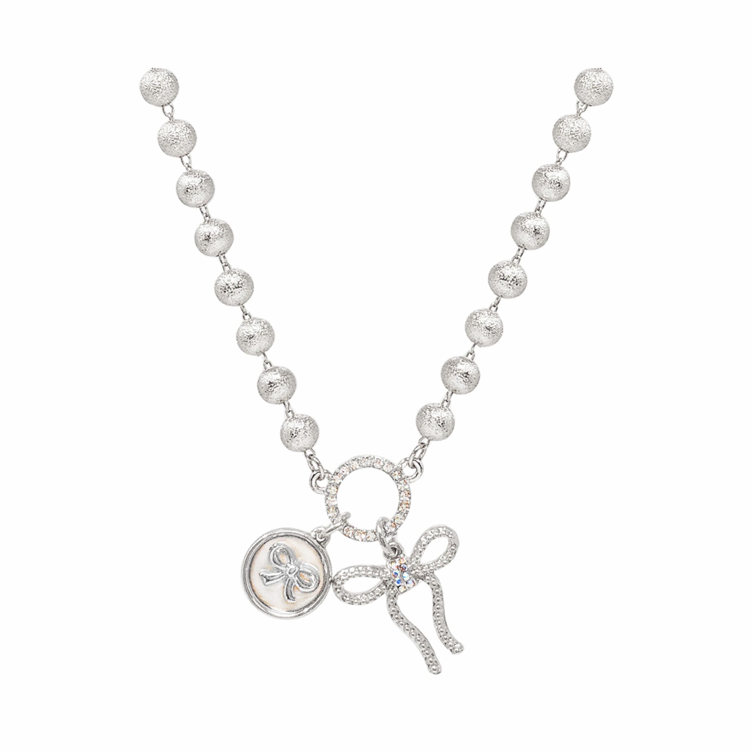 Necklace Textured Bead And Bow Pendants, 18″ + 3″