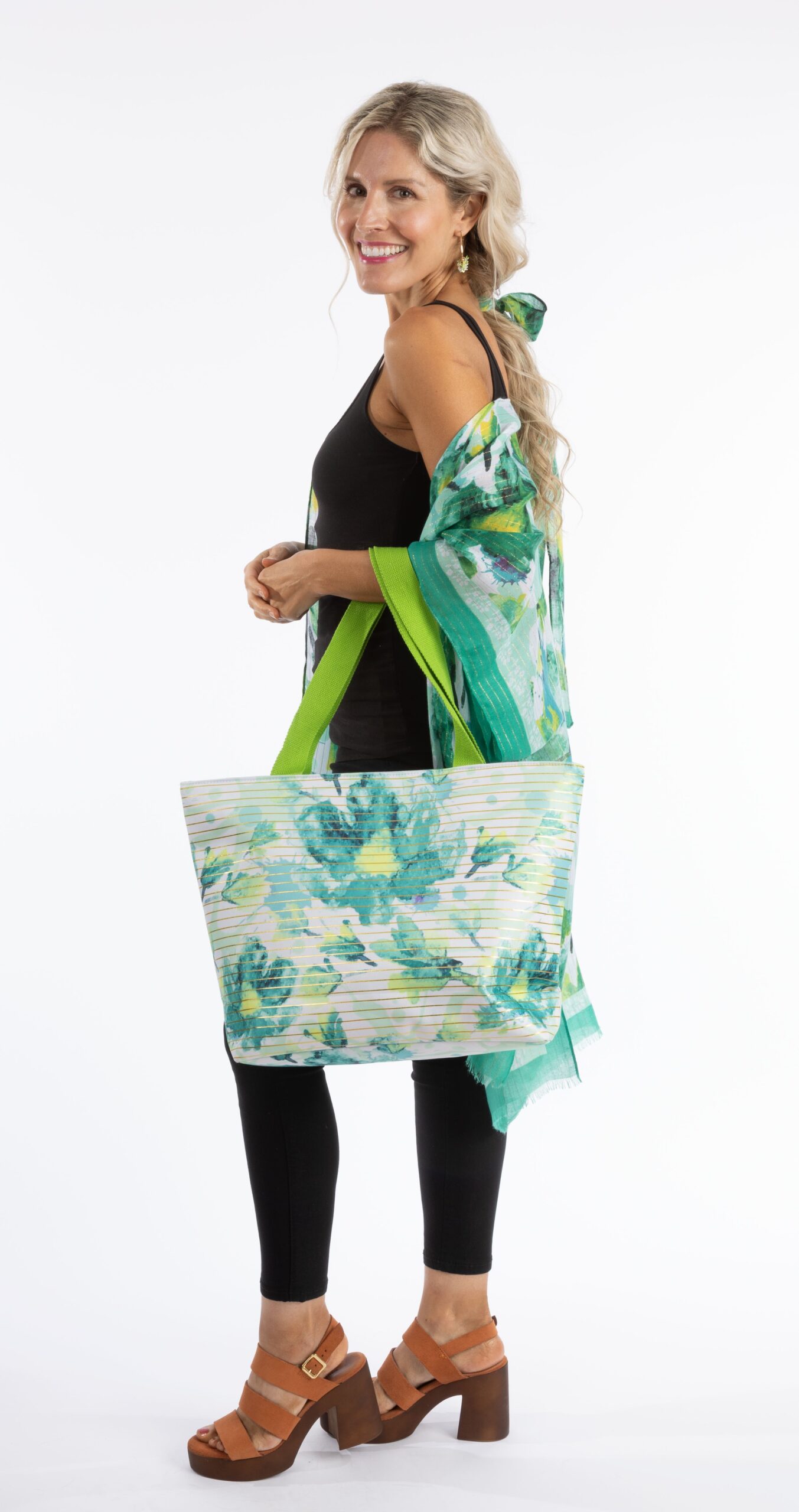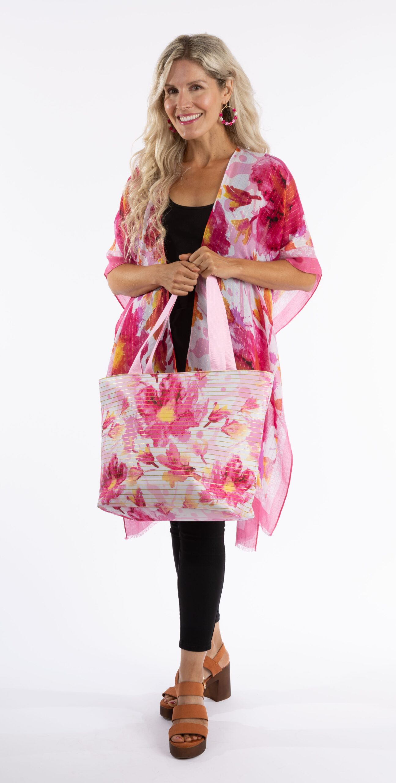 Effortlessly Chic and Perfectly Matched! The elegant Cover-Ups, with a versatile tie accessory, match the spacious Floral & Gold Stripes Totes. These thoughtfully curated coordinating accessories make it easy to create polished, cohesive looks for any occasion.