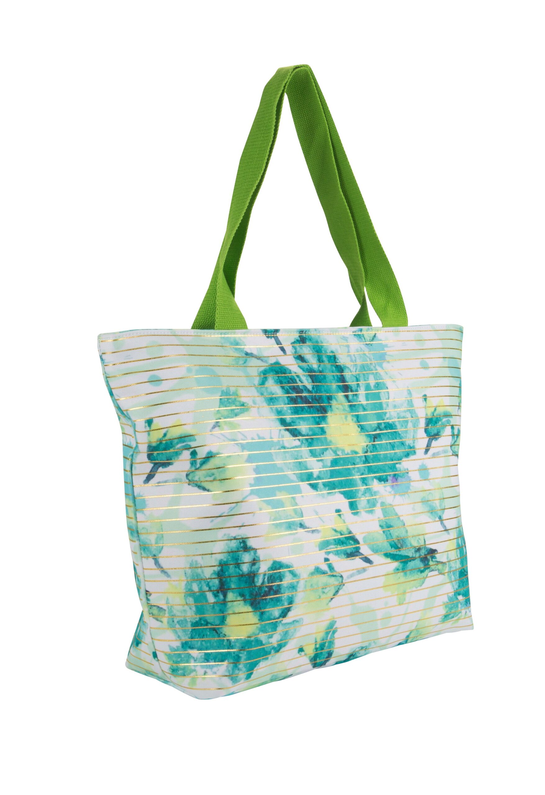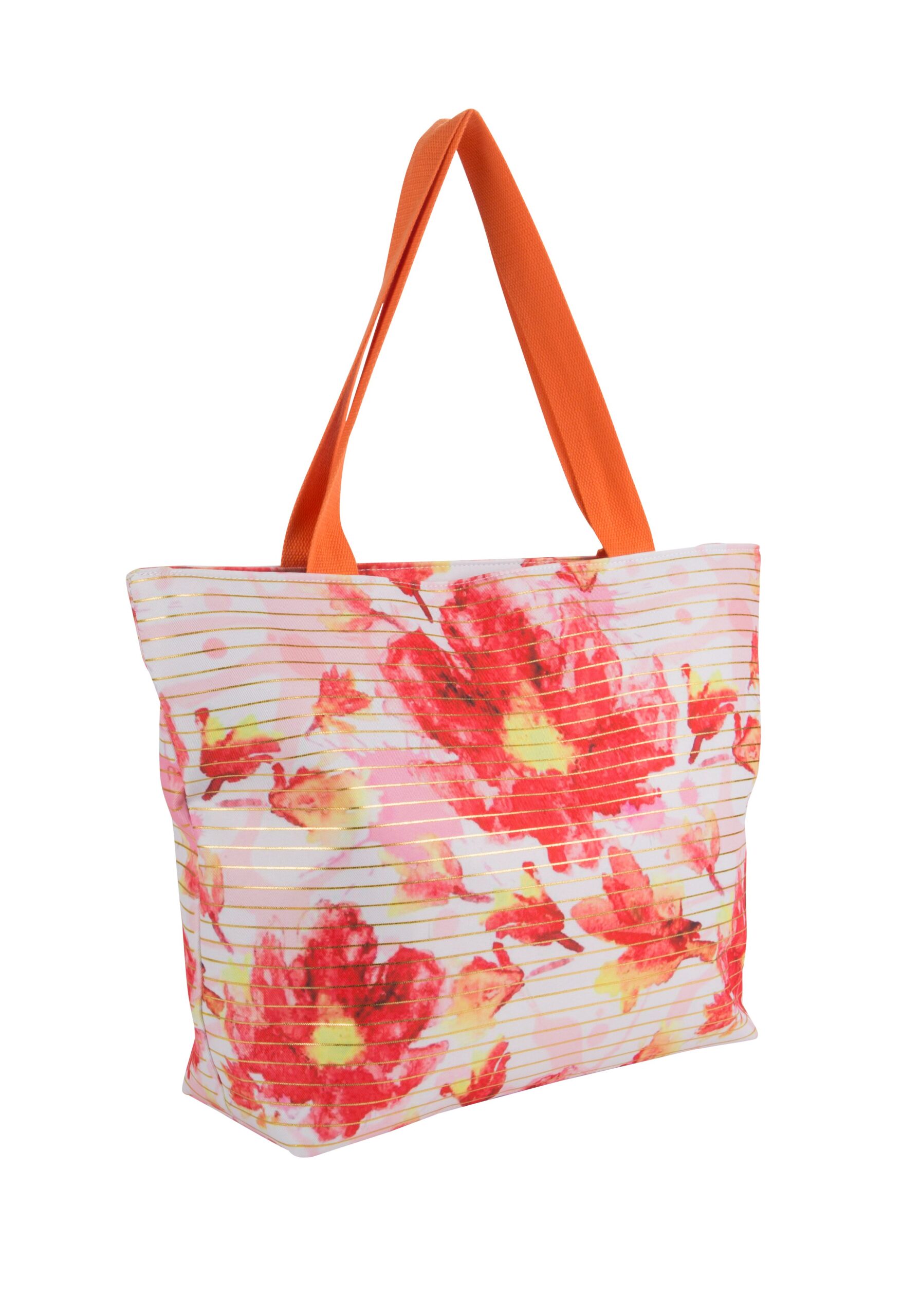 tote floral and gold strips, zipper closure, 4 assorted, 19″w x 13″h x 5.5″d