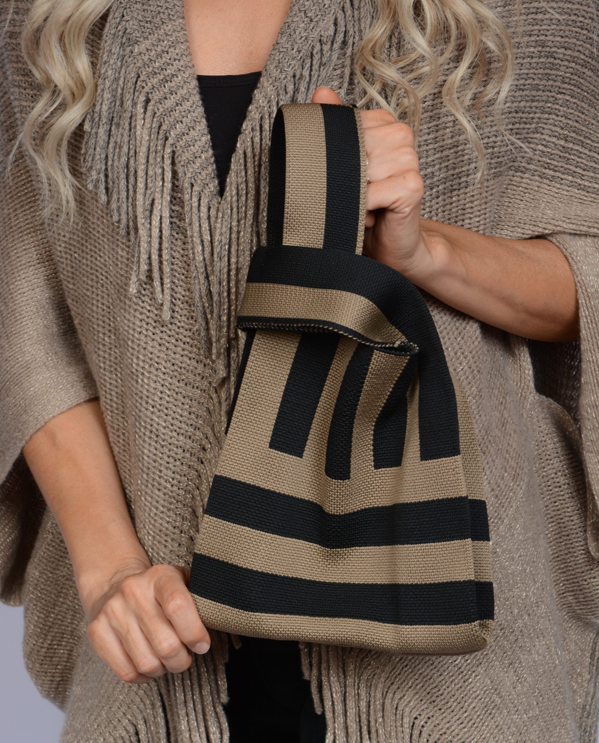 ?”Stay on trend with these Japanese Knot Bags.?These assorted knit bags are soft to the touch and come in beautiful assorted colors and patterns.?Tuck one strap of the T-shirt-shaped bag through the other strap to form a wristlet bag to be carried by the one strap. Plus, they are so effortlessly chic and easy to use!” Tote Knit T-Shirt Bag, 6 Assorted, 13.8″H X 7.9″W X 3″D