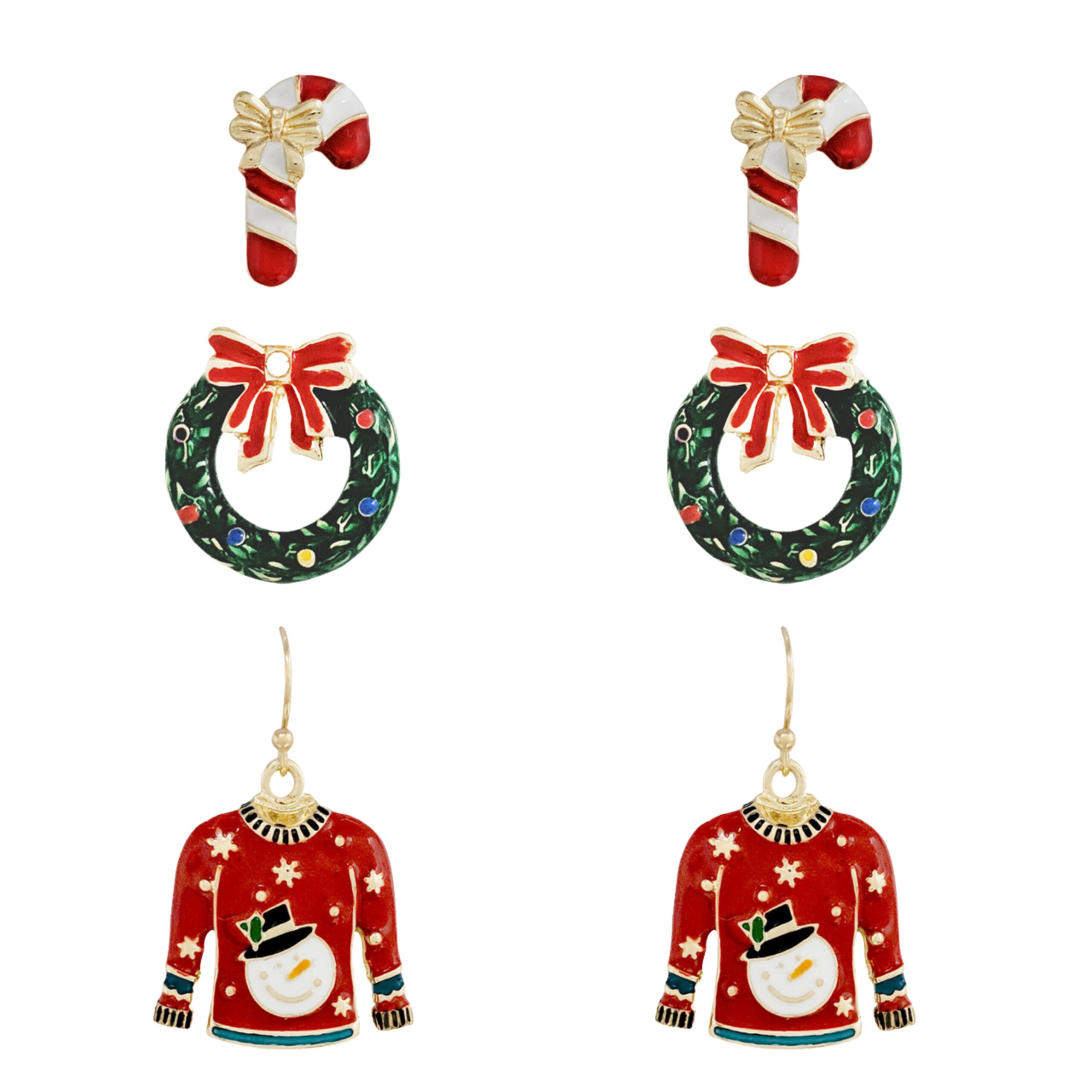 Trio Mix Style Christmas Earrings, 6 Assorted Pairs