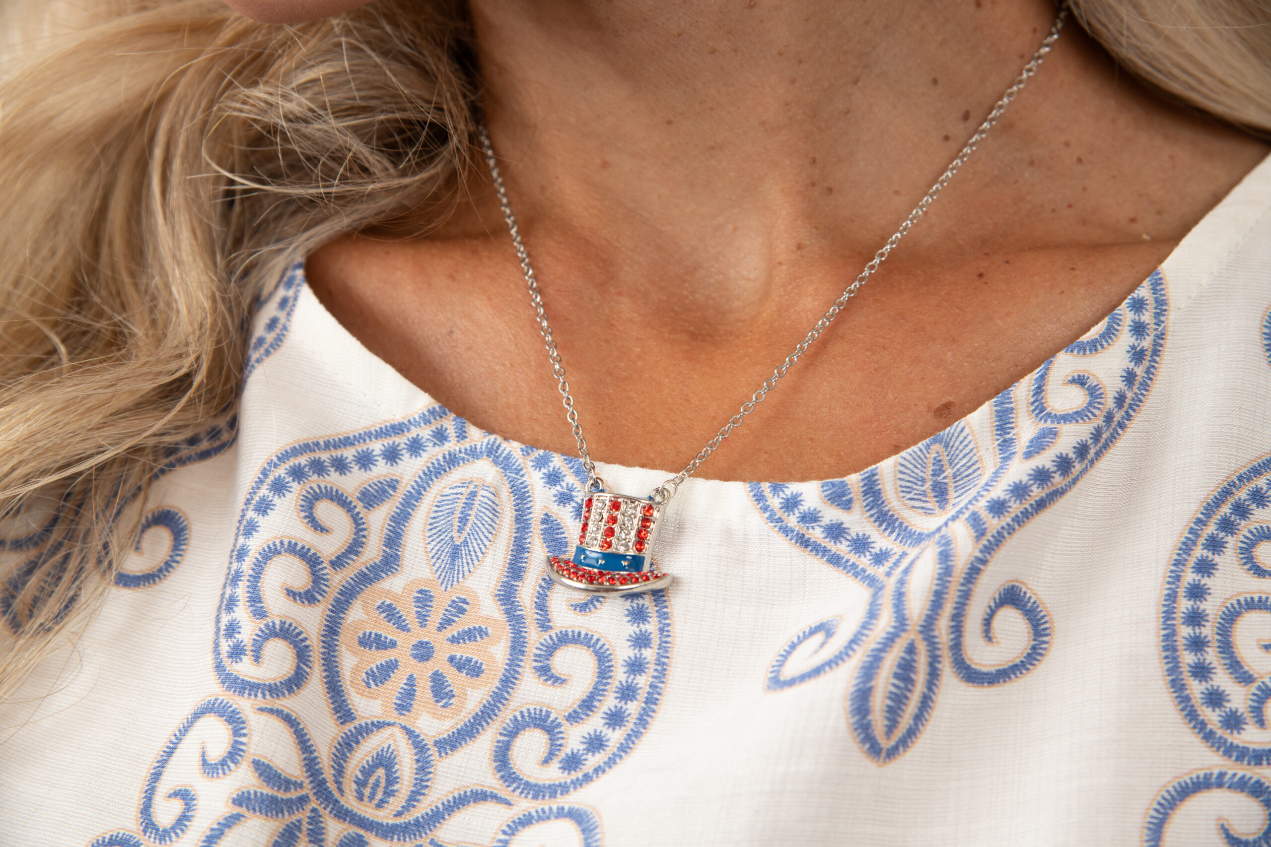 Uncle Sam Hat USA Flag Necklace