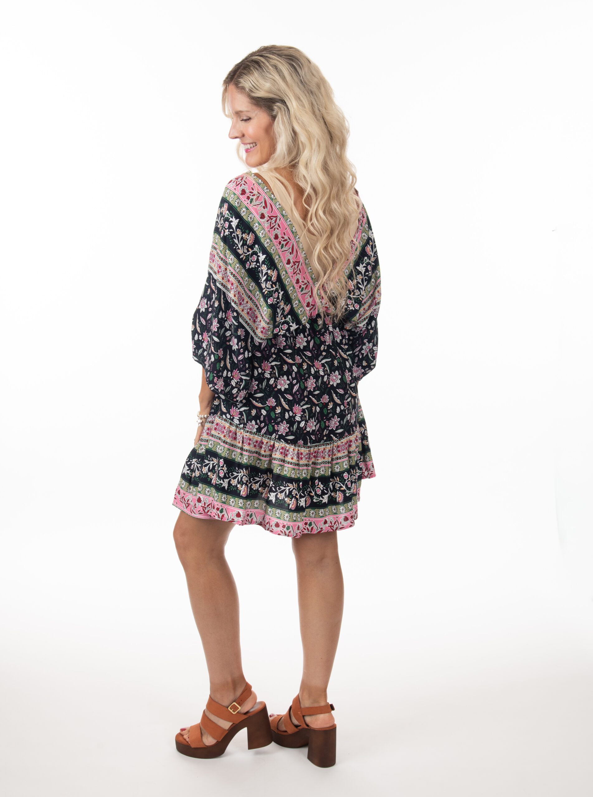 Short Flowy Cap Sleeved Lace Up Patchwork Dress, Assorted Designs