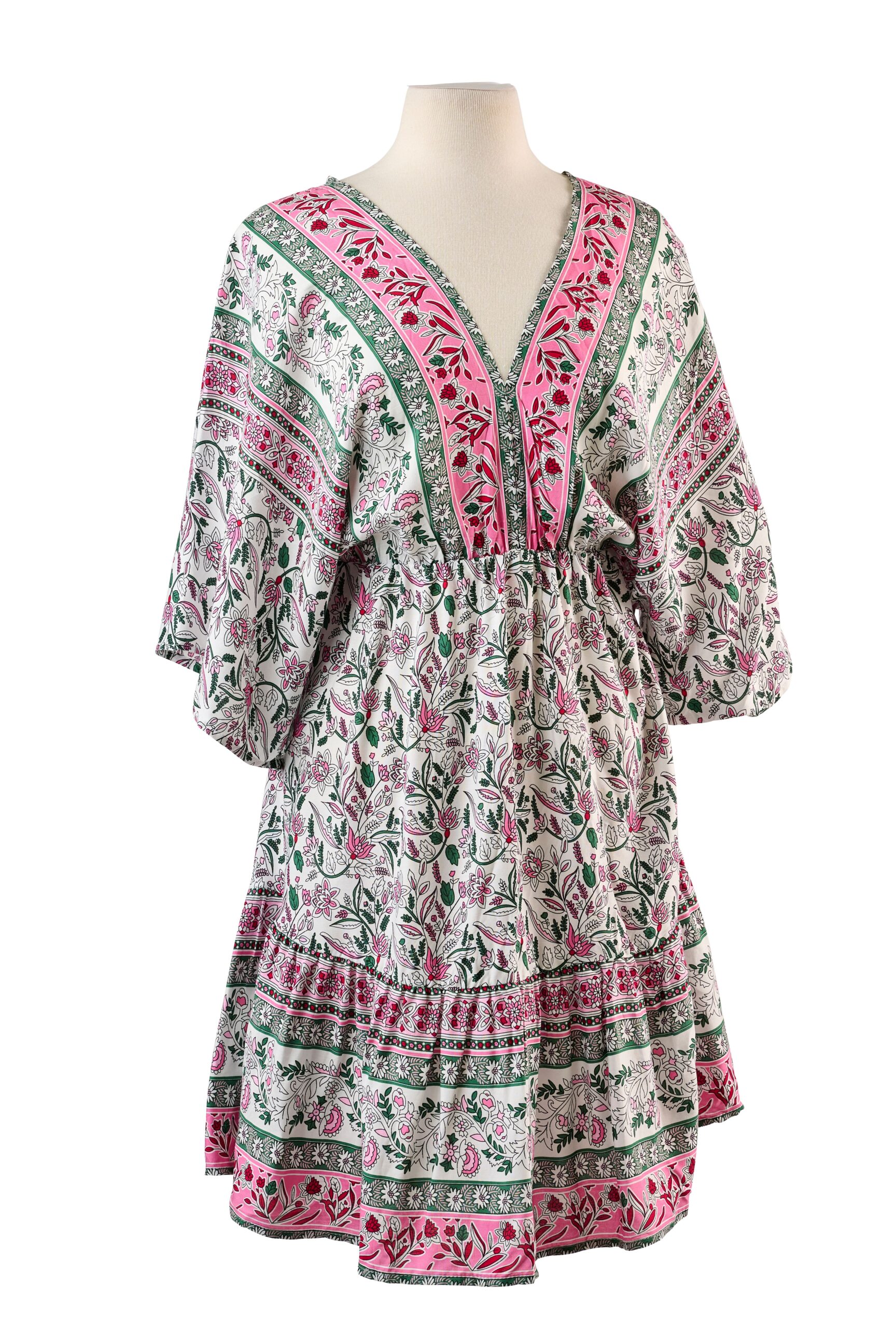 Dress V Neck Half Sleeve, Elastic Waistband, 3 Assorted